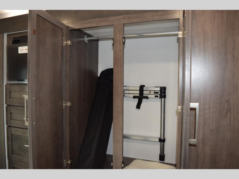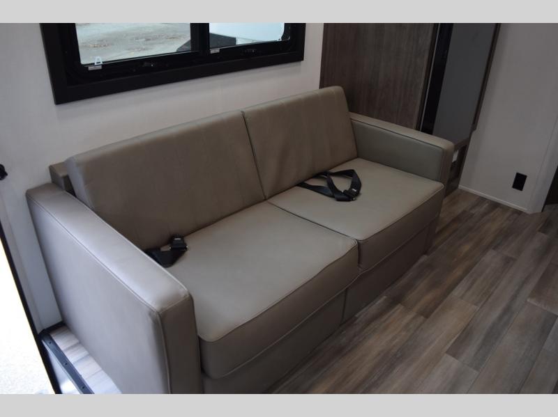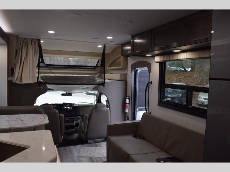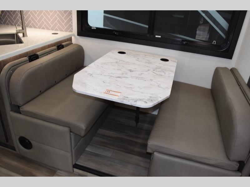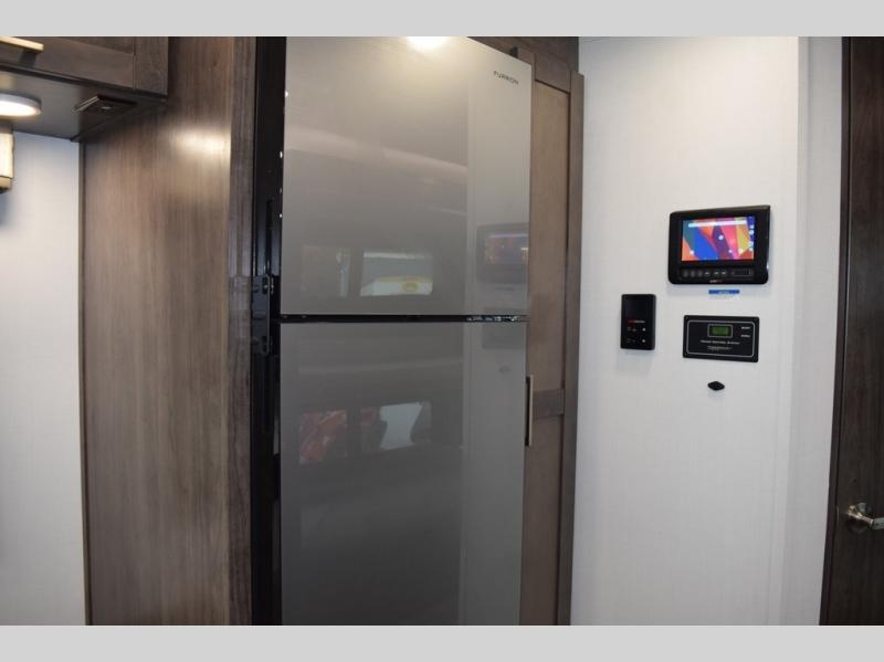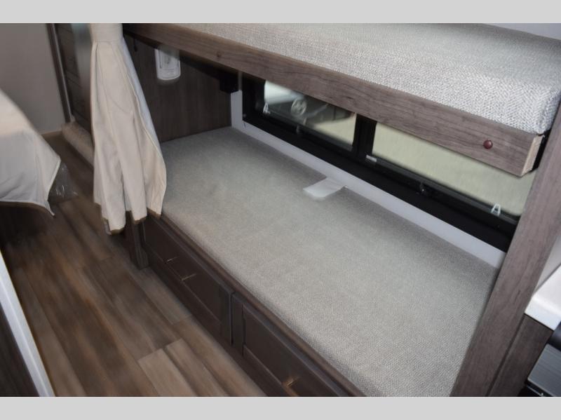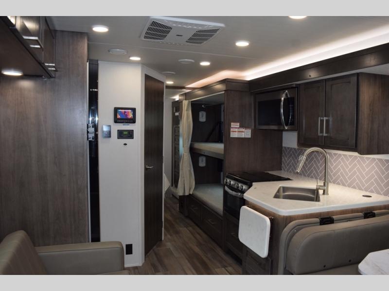 The whole family can travel together in this motorhome! The kiddos can sleep on the set of bunk beds with tablet holders and you can sleep on the 60" x 74" queen bed in the rear private bedroom. Everyone can easily access the dual entry bathroom to freshen up in the 32" radius shower each morning. Cook up delicious meals on the Furrion all-in-one cooktop, then head to the booth dinette which can also transform into an extra sleeping space. You can take an afternoon nap on the sofa or head outdoors to watch the big game at the exterior LED HD Smart TV underneath the 18' electric awning with LED lights to highlight the good times!