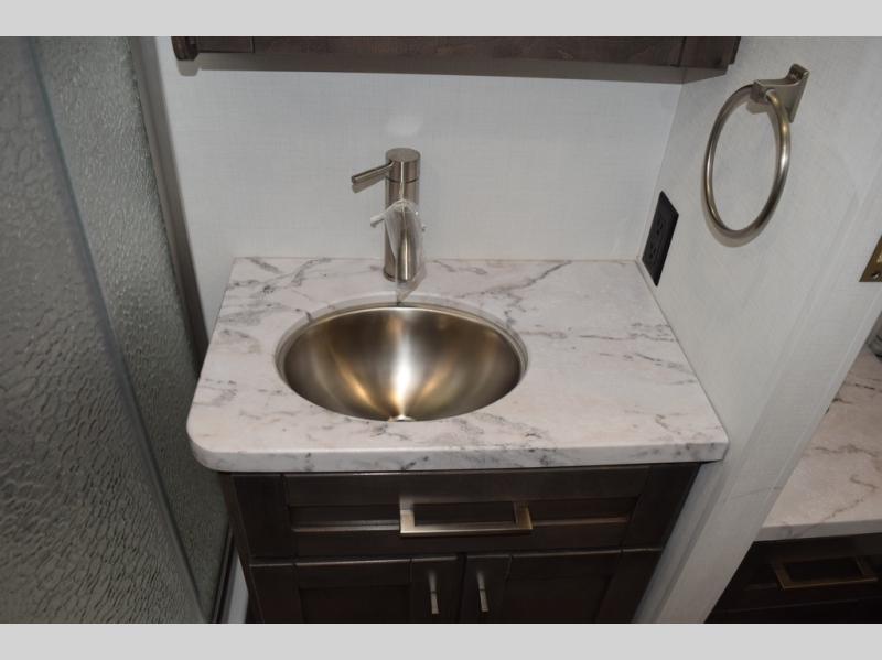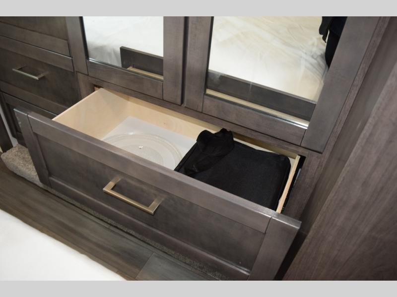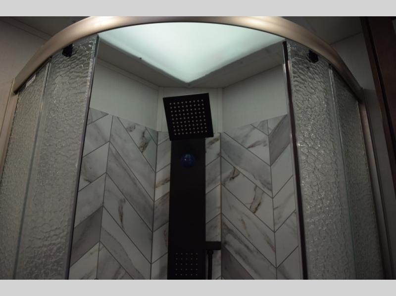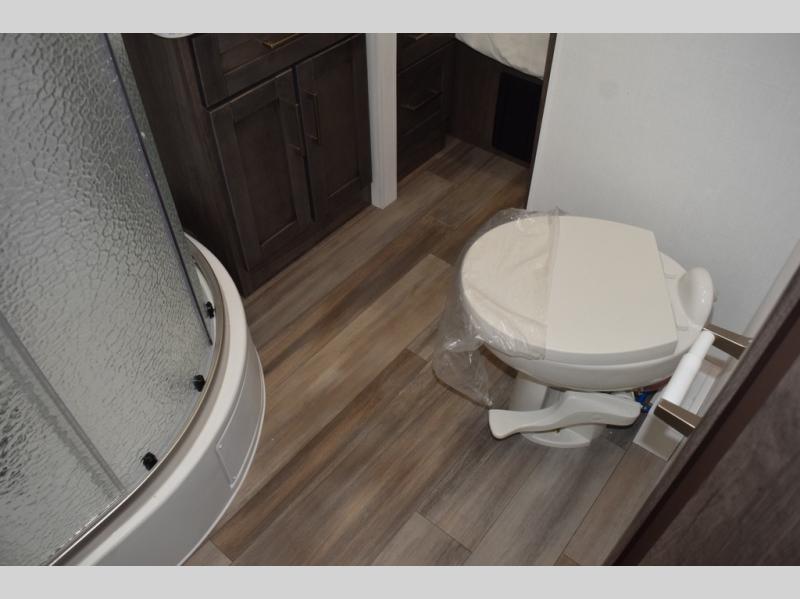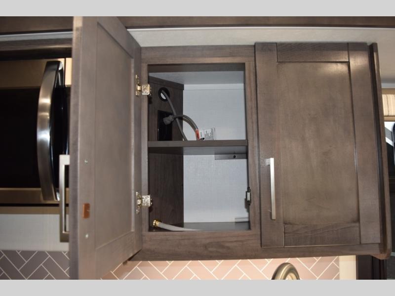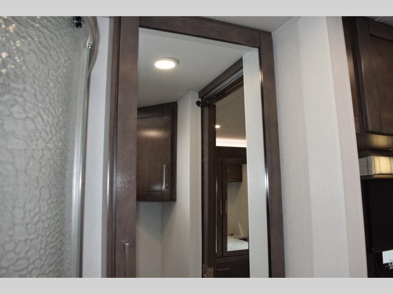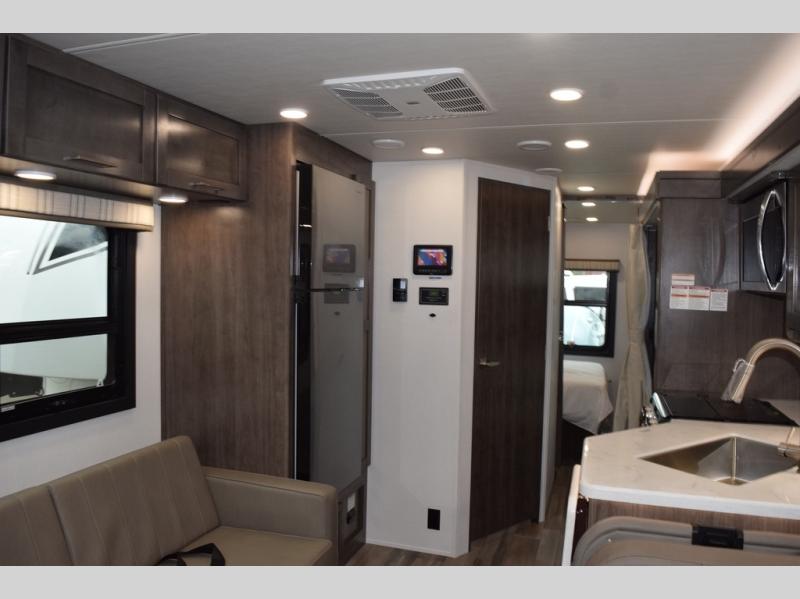 The whole family can travel together in this motorhome! The kiddos can sleep on the set of bunk beds with tablet holders and you can sleep on the 60" x 74" queen bed in the rear private bedroom. Everyone can easily access the dual entry bathroom to freshen up in the 32" radius shower each morning. Cook up delicious meals on the Furrion all-in-one cooktop, then head to the booth dinette which can also transform into an extra sleeping space. You can take an afternoon nap on the sofa or head outdoors to watch the big game at the exterior LED HD Smart TV underneath the 18' electric awning with LED lights to highlight the good times!
