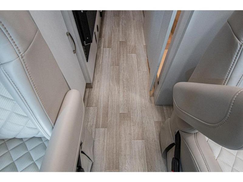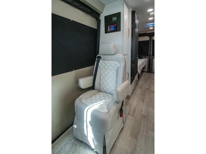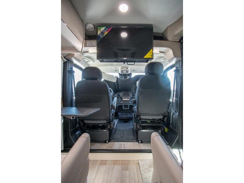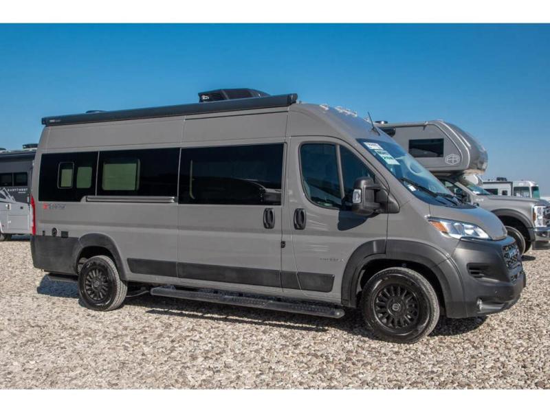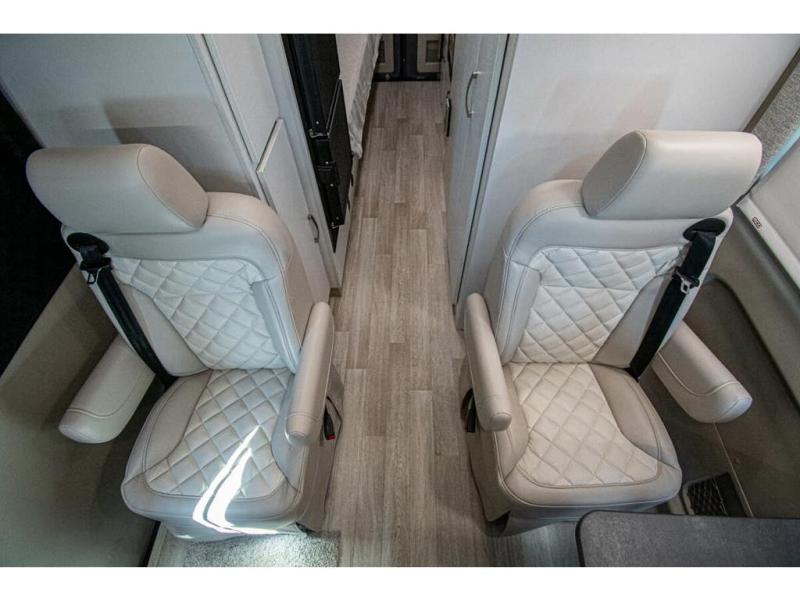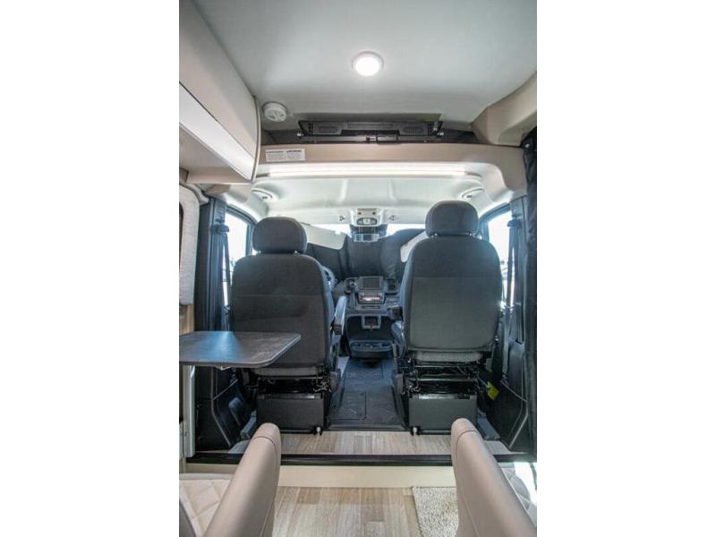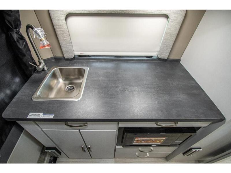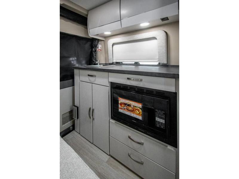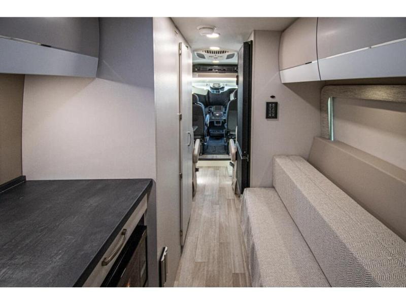 Enjoy day trips with friends or overnight stays at your favorite campground with your honey in this cozy motorhome. You will find swivel captain seats, plus two additional cab bucket seats for ride-along friends. The sofa in the back can convert to a 48" x 76" extended bed when you need a rest, and there is a cab TV to watch a movie. If you're needing additional sleeping space, just add the optional pop-top with a 50.5" x 79.5" sleeping space! The kitchen is equipped with everything you need to prepare meals each day, including a stainless steel sink, a convection microwave, and a 5.3 DC refrigerator for perishables. This model includes a convenient wet bath with a medicine cabinet with a mirror, a powered roof vent, plus an Aqua View Showermiser water management system you are sure to appreciate. The optional Li Package can be added which includes a 48V-165 amp hour smart lithium battery, providing 7.9KW hours of power, and more.