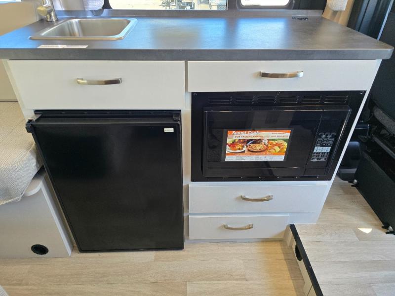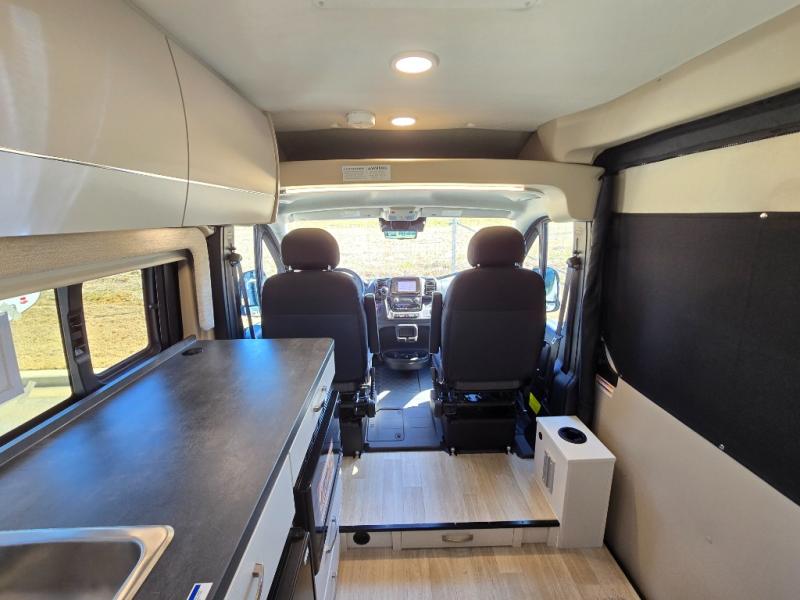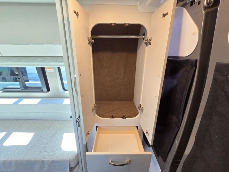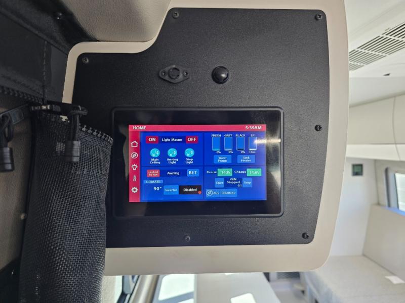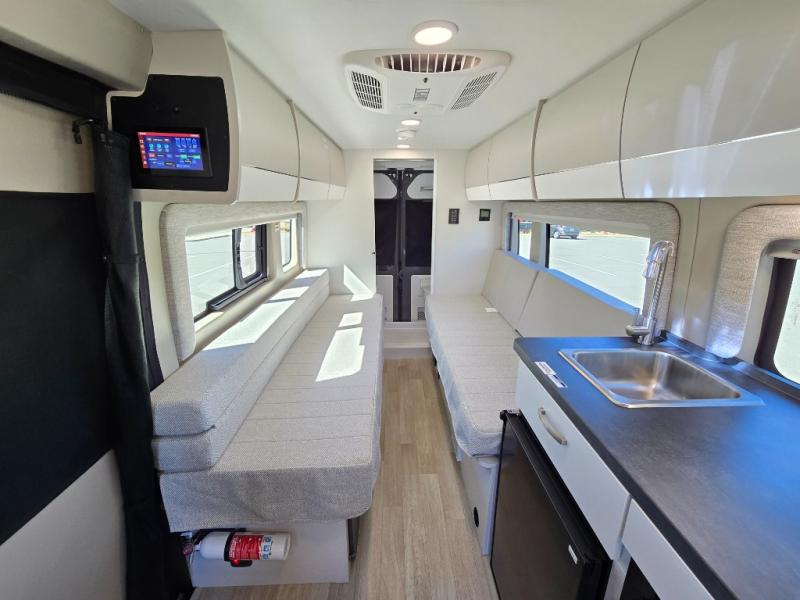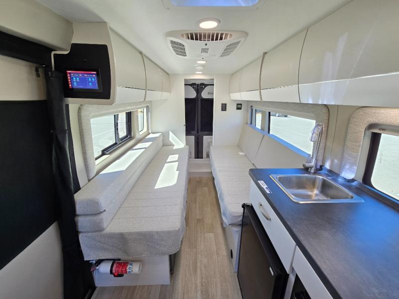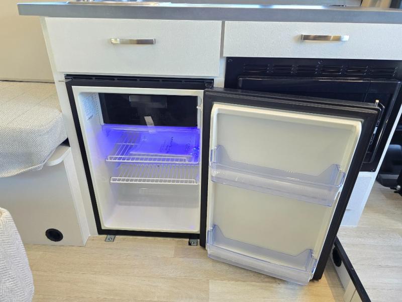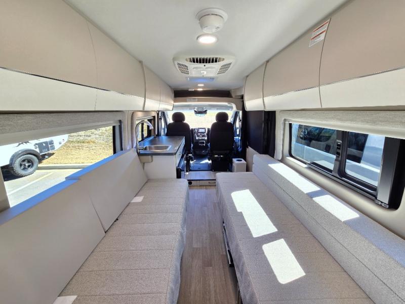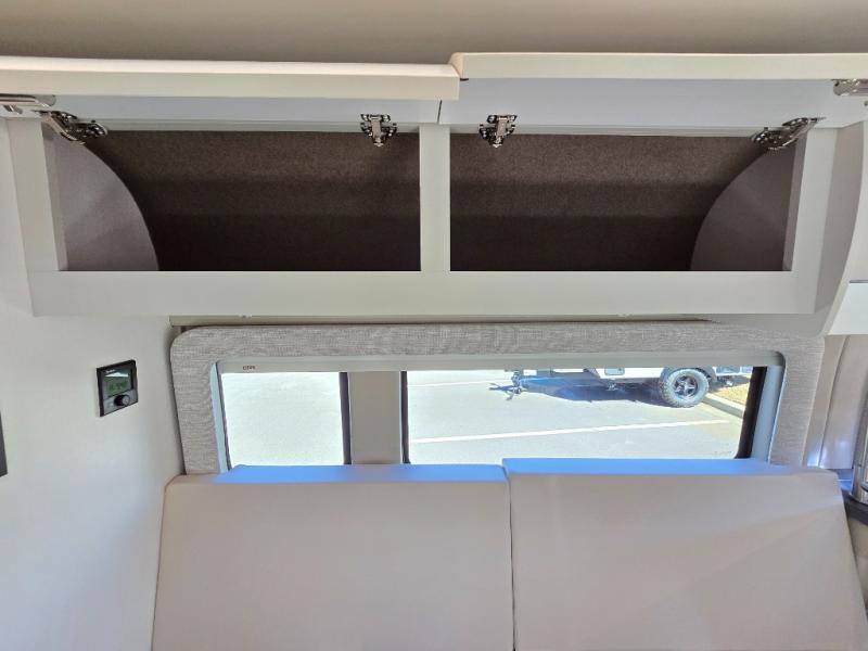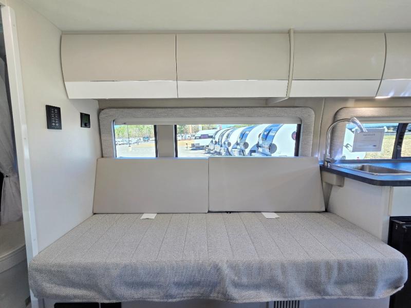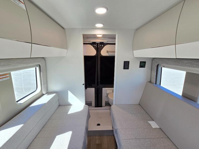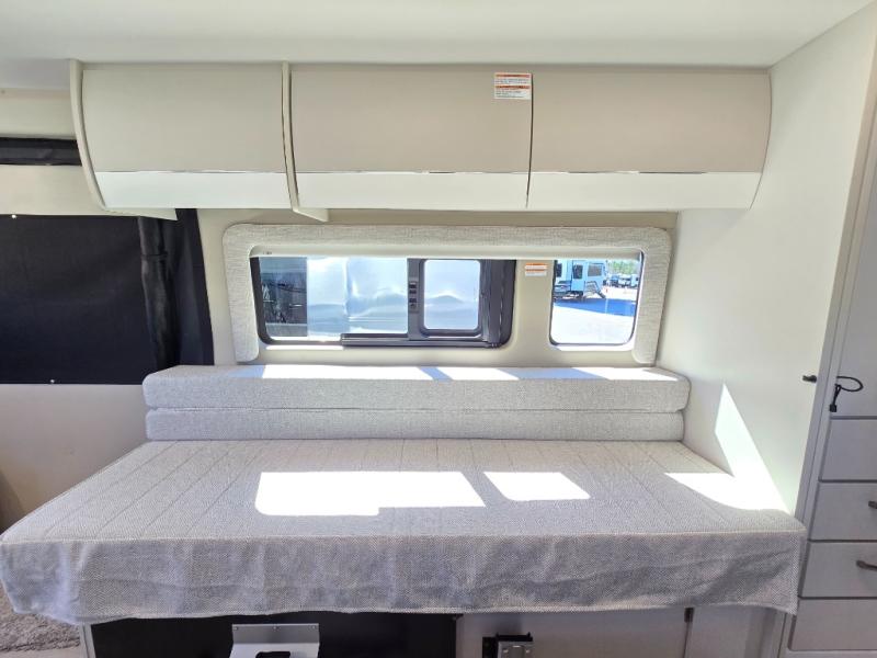 Your trek across country is made comfortable in this coach for two. You can swivel the captains seats around when you get to your destination, or head outdoors to sit under the 13' Thule armless awning with LED lights. The pull-out table indoors will provide a space for your coffee in the morning, while breakfast is being cooked in the convection microwave or on the two burner cooktop. A rear wet bath will allow you to stay clean throughout your trip, and you'll find plenty of storage space for your belongings. You'll love the versatile sleeping arrangements in this model that includes twin-size beds with a filler cushion that converts to a king-size bed, plus there is under-bed storage for your luggage. The optional Li Package can also be added which features a 48V-165 amp hour smart lithium battery, providing 7.9KW hours of power, and more; see dealer for more details!