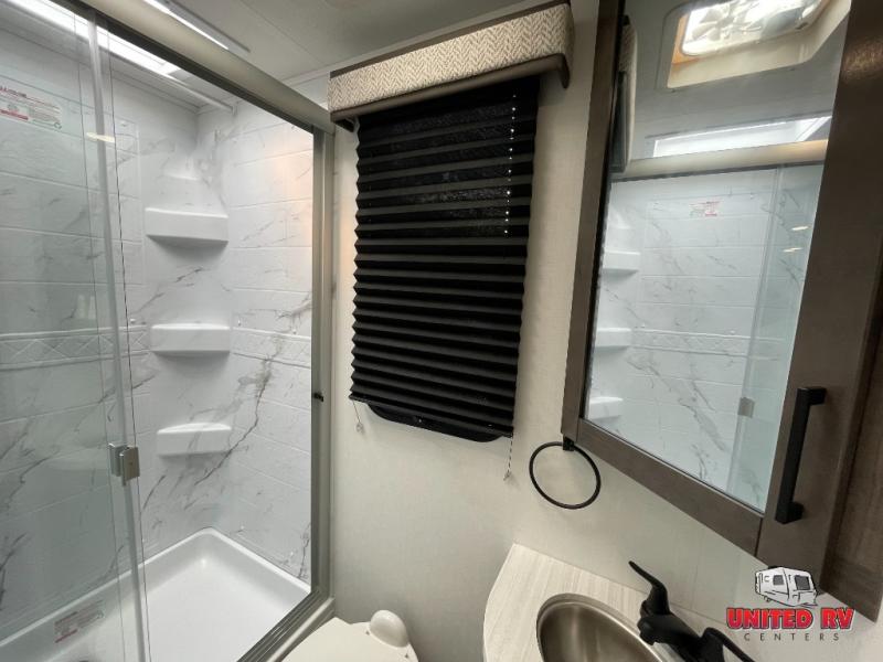 When you enjoy the outside as much as the inside, this coach makes sense! The exterior offers a 19' 8" electric awning which creates an outdoor living area where you can watch the exterior TV and make meals using the outside kitchen. When you are ready to be indoors, head inside to enjoy seating on the swivel captains chairs, the sofa or the booth dinette. Everyone can watch the 50" LED HD Smart TV, get cleaned up in the full corner bathroom, and fall asleep on the queen bed, the cab-over bunk or on the furniture that doubles as sleeping space. And the cook can make breakfast using the indoor kitchen amenities including a residential-size microwave.