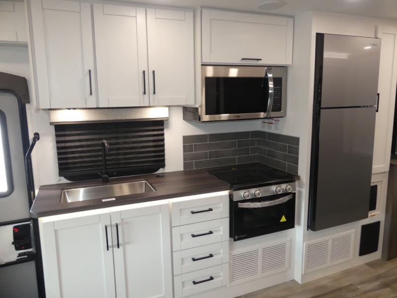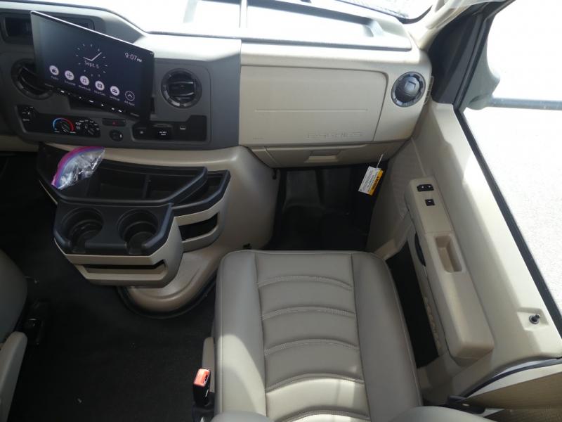 With any Odyssey Class C gas motorhome by Entegra Coach, the driver will appreciate the power from the 325 HP engine, the towing capacity from the 7,500 lb. hitch, the tire pressure monitoring system, the navigation from the Sony infotainment center with Apple CarPlay and Android Auto, plus the backup and side-view cameras when parking and driving down the highway. The kitchen offers full amenities including a recessed stainless steel sink with a cutting board sink cover, LED-lit pressed countertops, a decorative backsplash, and a pop-up charging station with 110 outlet and USB plugs to keep your smart phones charged. Get ready for luxury in a Class C, choose your favorite today!