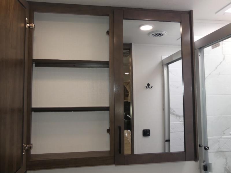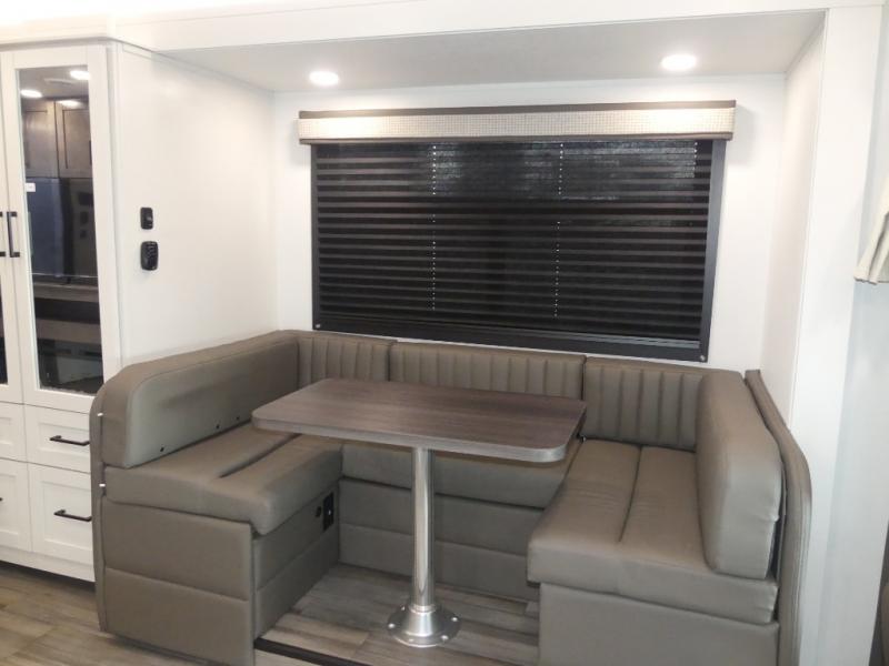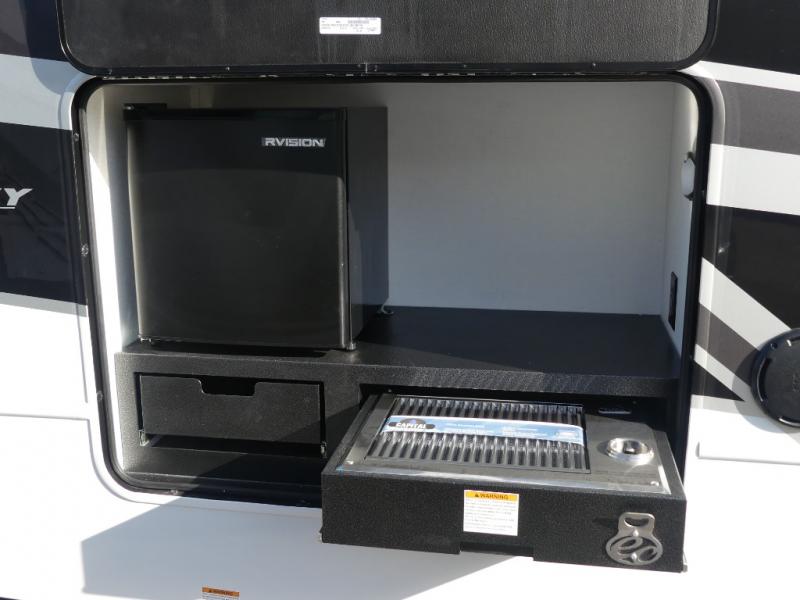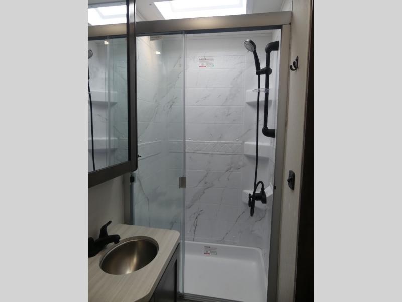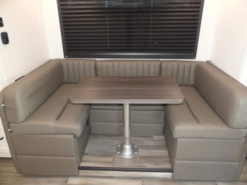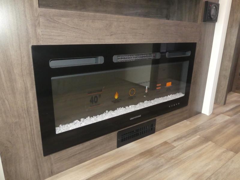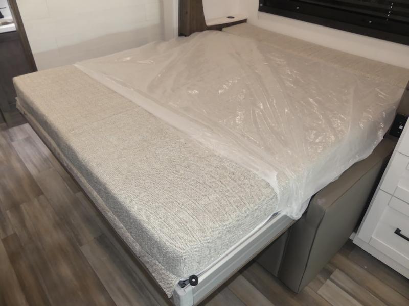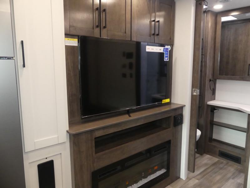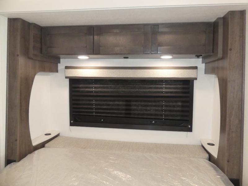 Enjoy a whole lot of comfort, fun and versatility in this coach! The queen Murphy bed and sofa combination allows you to convert between a living area and a bedroom, with a fireplace and an LED HD Smart TV. Outside, the exterior TV and 19' electric awning provide you an outdoor living space to enjoy nature and its beauty. The inside also provides a rear full bathroom including a space saving sliding door, linen storage, counter space for toiletries and a shower. You can dine at the U-shaped dinette or while sitting on the swivel captains chairs, and the cab-over bunk will be a perfect place to stay the night.