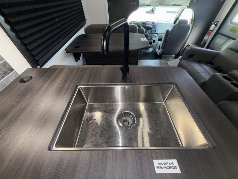 With any Odyssey Class C gas motorhome by Entegra Coach, the driver will appreciate the power from the 325 HP engine, the towing capacity from the 7,500 lb. hitch, the tire pressure monitoring system, the navigation from the Sony infotainment center with Apple CarPlay and Android Auto, plus the backup and side-view cameras when parking and driving down the highway. The kitchen offers full amenities including a recessed stainless steel sink with a cutting board sink cover, LED-lit pressed countertops, a decorative backsplash, and a pop-up charging station with 110 outlet and USB plugs to keep your smart phones charged. Get ready for luxury in a Class C, choose your favorite today!