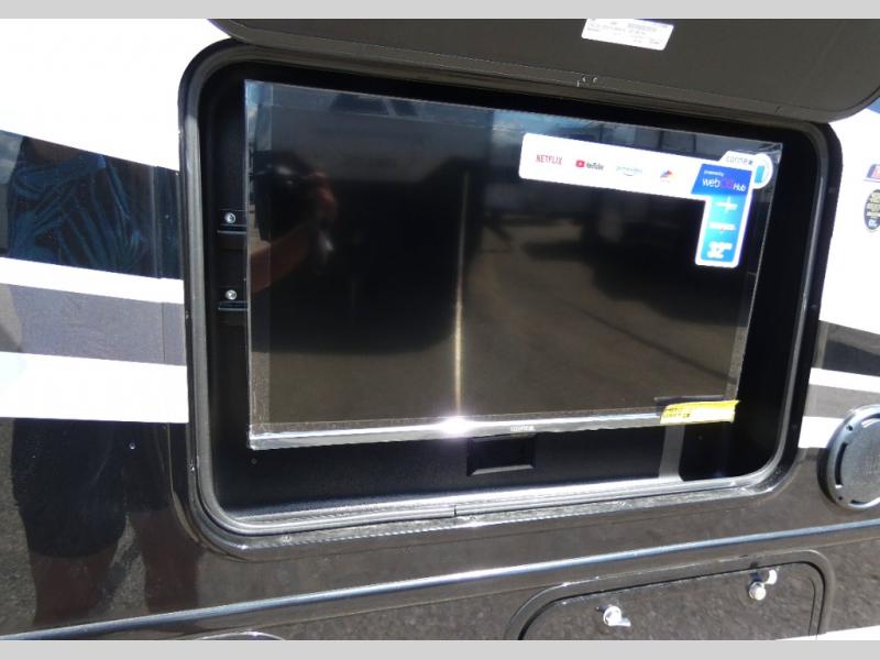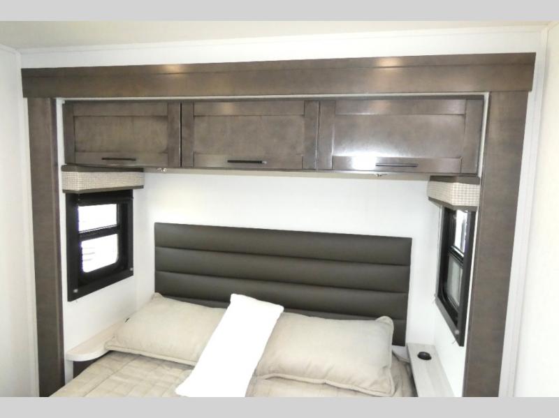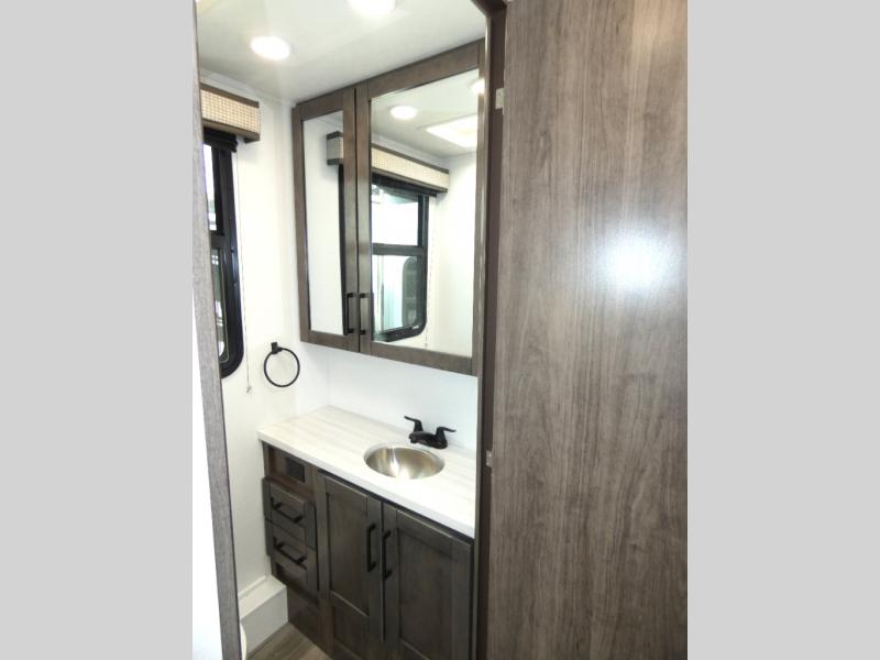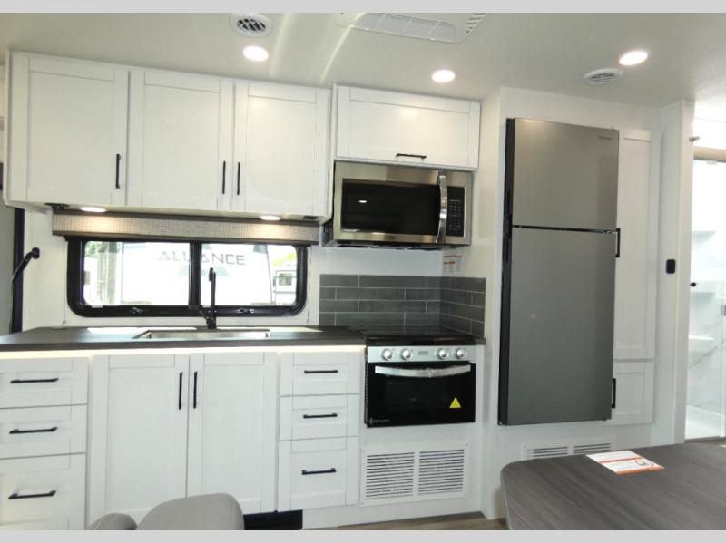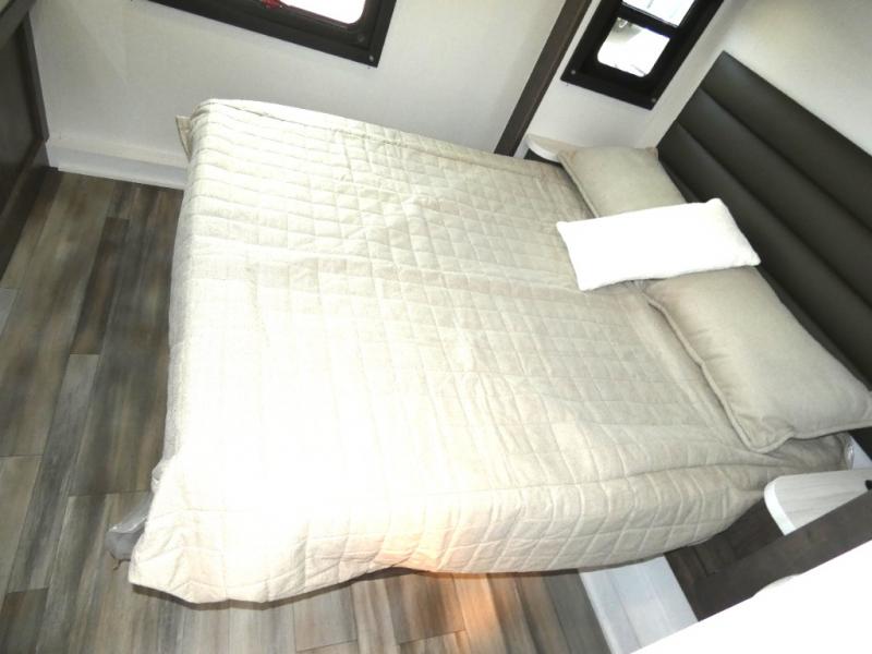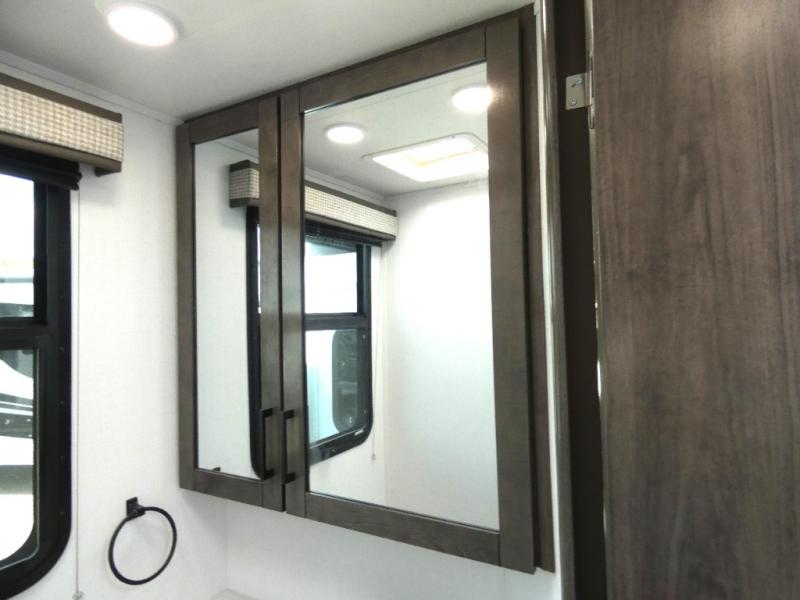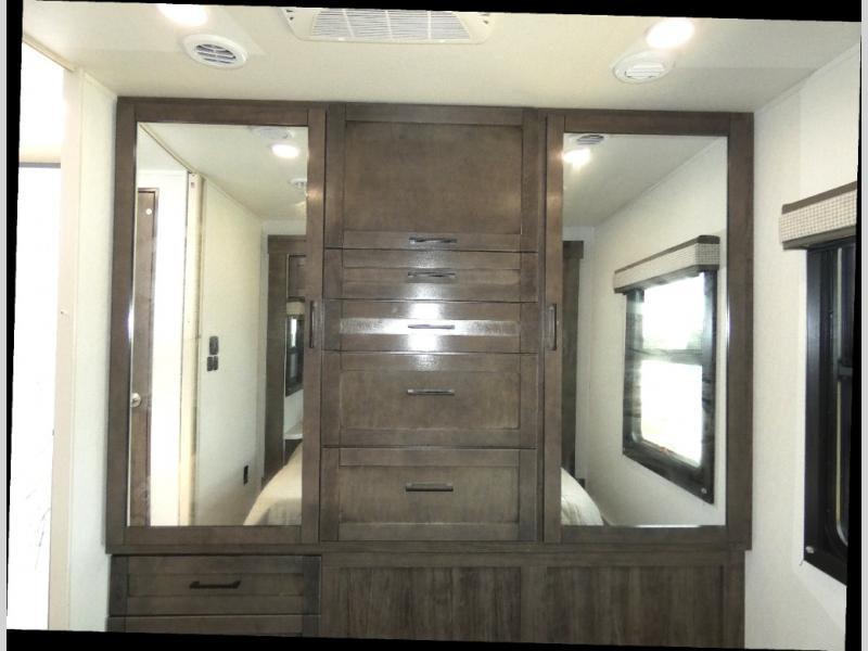 This coach allows you to take vacations in comfort and luxury with a spacious bedroom that includes a queen bed slide, dual wardrobes plus a way to close off the bedroom for privacy. The split bathroom gives you the ability to take a shower while another is brushing their teeth in the private toilet and sink room. You will find the main living and kitchen area to be spacious as well with a slide out that includes a booth dinette and sofa. And the cook will love the galley kitchen including the residential-size microwave and Furrion all-in-one cooktop and oven. And the cab-over bunk plus the furniture offers extra sleeping space. There are many more features to enjoy, take a look!