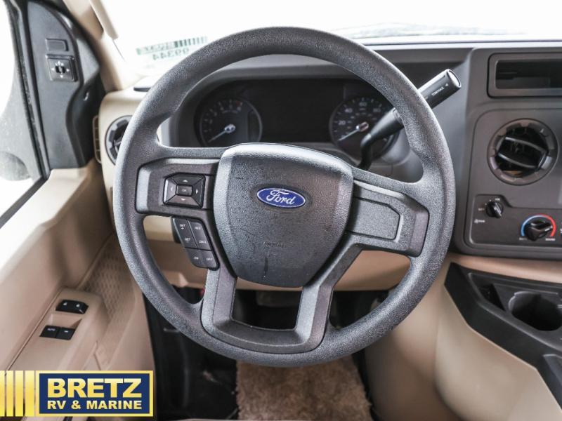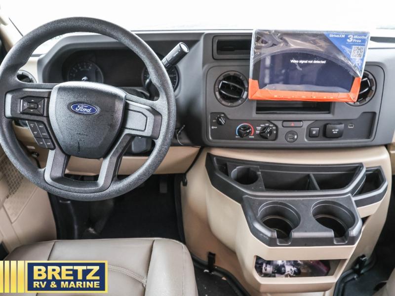 With any Odyssey Class C gas motorhome by Entegra Coach, the driver will appreciate the power from the 325 HP engine, the towing capacity from the 7,500 lb. hitch, the tire pressure monitoring system, the navigation from the Sony infotainment center with Apple CarPlay and Android Auto, plus the backup and side-view cameras when parking and driving down the highway. The kitchen offers full amenities including a recessed stainless steel sink with a cutting board sink cover, LED-lit pressed countertops, a decorative backsplash, and a pop-up charging station with 110 outlet and USB plugs to keep your smart phones charged. Get ready for luxury in a Class C, choose your favorite today!