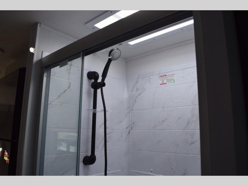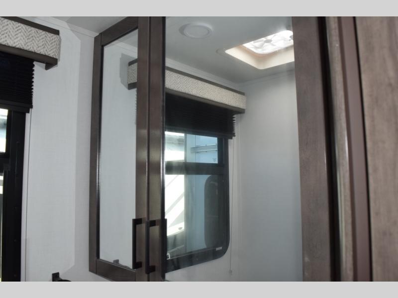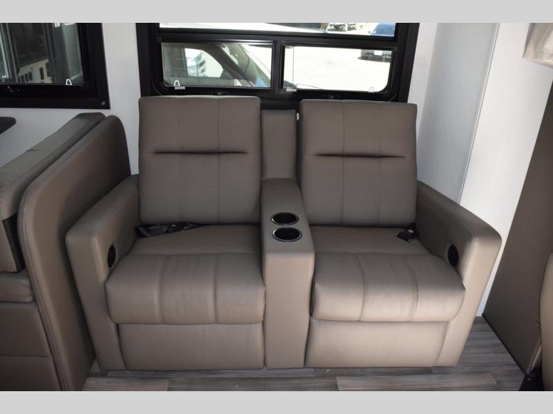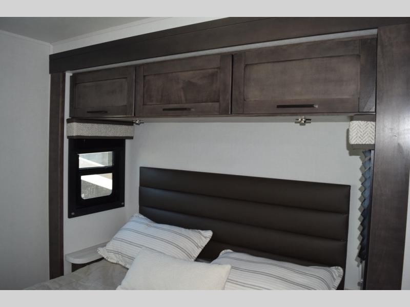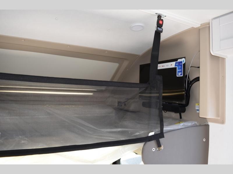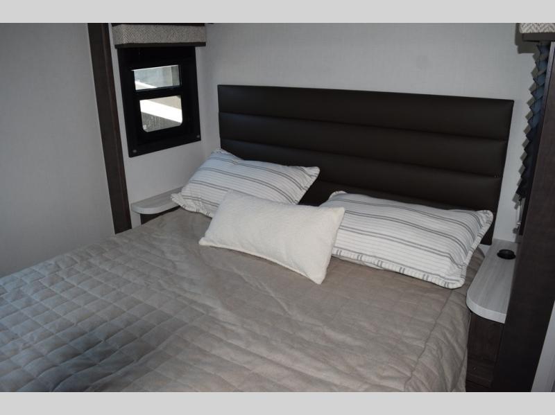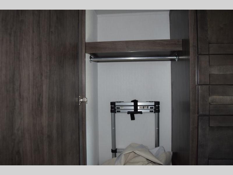 This coach allows you to take vacations in comfort and luxury with a spacious bedroom that includes a queen bed slide, dual wardrobes and a TV option for nighttime viewing, plus a way to close off the bedroom for privacy. The split bathroom gives you the ability to take a shower while another is brushing their teeth in the private toilet and sink room. You will find the main living and kitchen area to be spacious as well with a slide out that includes a booth dinette and sofa. And the cook will love the galley kitchen including the residential-size microwave and Furrion all-in-one cooktop and oven. And the cab-over bunk plus the furniture offers extra sleeping space. There are many more features to enjoy, take a look!
