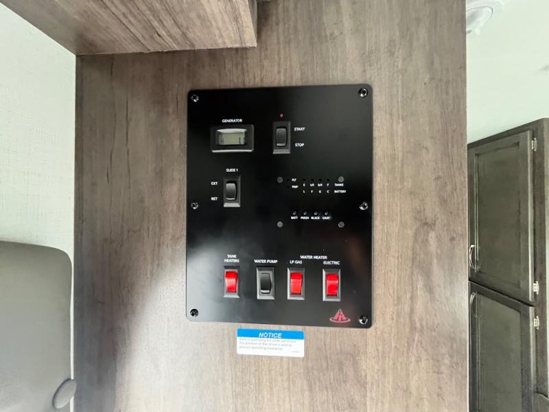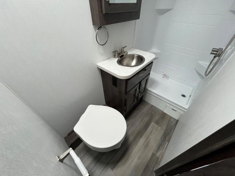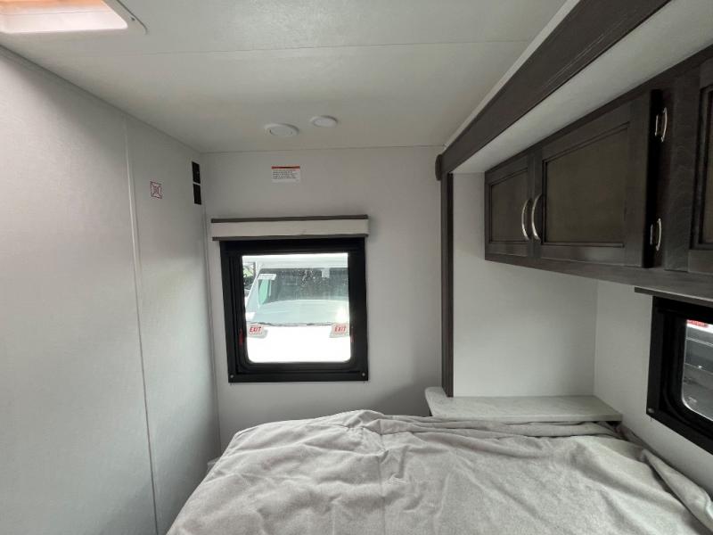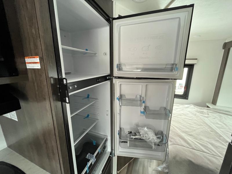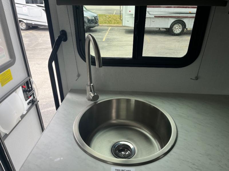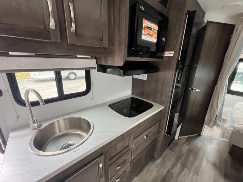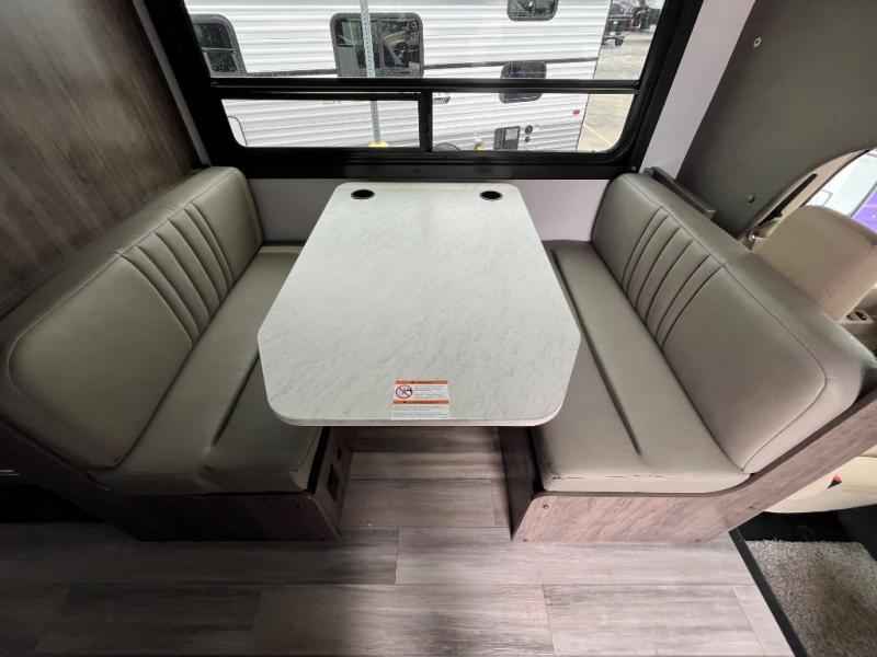Make your trips complete in this coach that can sleep four to five each night. There is a cab-over bunk with a 750 lb. capacity for guests and an RV queen bed slide out in the rear corner bedroom. The booth dinette can be used to dine at, play games, and even sleep an additional guest or two little ones. A two burner cooktop comes standard in the kitchen, along with a convection microwave, a stainless steel sink, and a 10 cu. ft. refrigerator. You will also appreciate having a full bath on board, and the 13' electric awning outside will provide a place to relax with a cold drink!