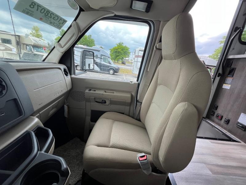 The Odyssey SE Class C gas motorhome by Entegra Coach is constructed with TuffShell vacuum-bond laminated sidewalls, a one-piece, seamless fiberglass front cap, and bead-foam insulation for added durability and strength. Whether you choose a model with a Ford E-350 chassis or Chevy 4500 chassis, you will get a durable coach made to last. The driver will also love the power steering, tilt steering wheel, and auxiliary start switch. The 7' interior ceiling height will provide plenty of space to stretch out and the high-intensity, recessed LED lights will make your space feel more like home. All of your power needs will be met with a 4,000-watt generator and 12V house battery, plus there is a 13.5K BTU A/C and 30K BTU furnace to keep you comfortable all year long. There are a couple additions you might want to add to further customize your Odyssey SE, like the optional automatic hydraulic leveling jacks and the optional 200W solar panel for some off-grid camping!