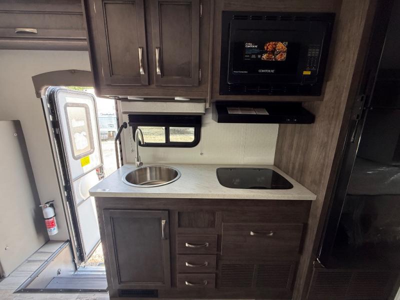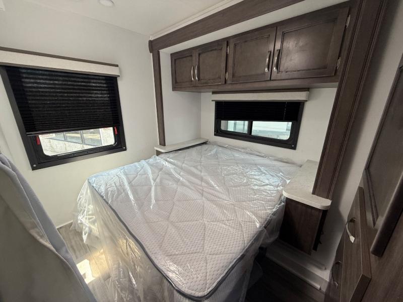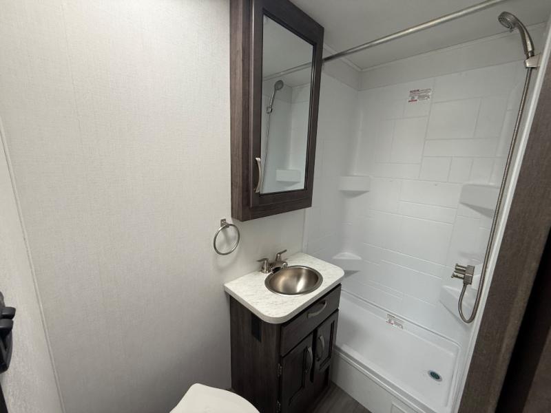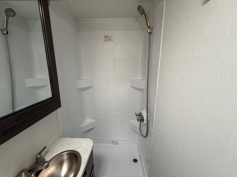 Make your trips complete in this coach that can sleep four to five each night. There is a cab-over bunk with a 750 lb. capacity for guests and an RV queen bed slide out in the rear corner bedroom. The booth dinette can be used to dine at, play games, and even sleep an additional guest or two little ones. A two burner cooktop comes standard in the kitchen, along with a convection microwave, a stainless steel sink, and a 10 cu. ft. refrigerator. You will also appreciate having a full bath on board, and the 13' electric awning outside will provide a place to relax with a cold drink!