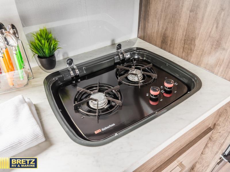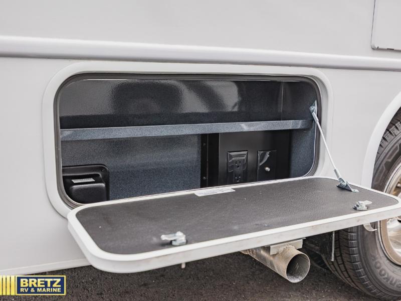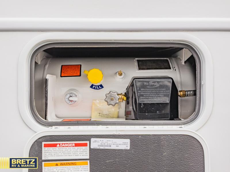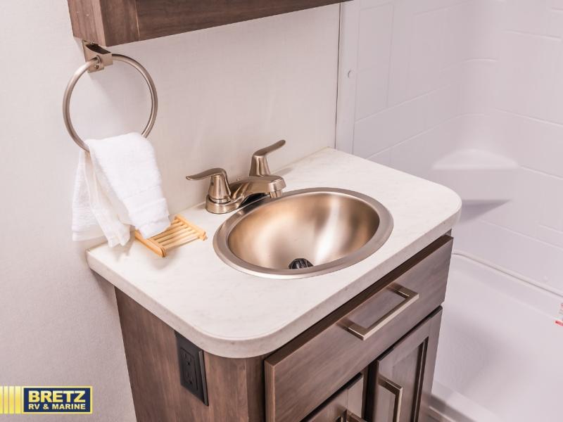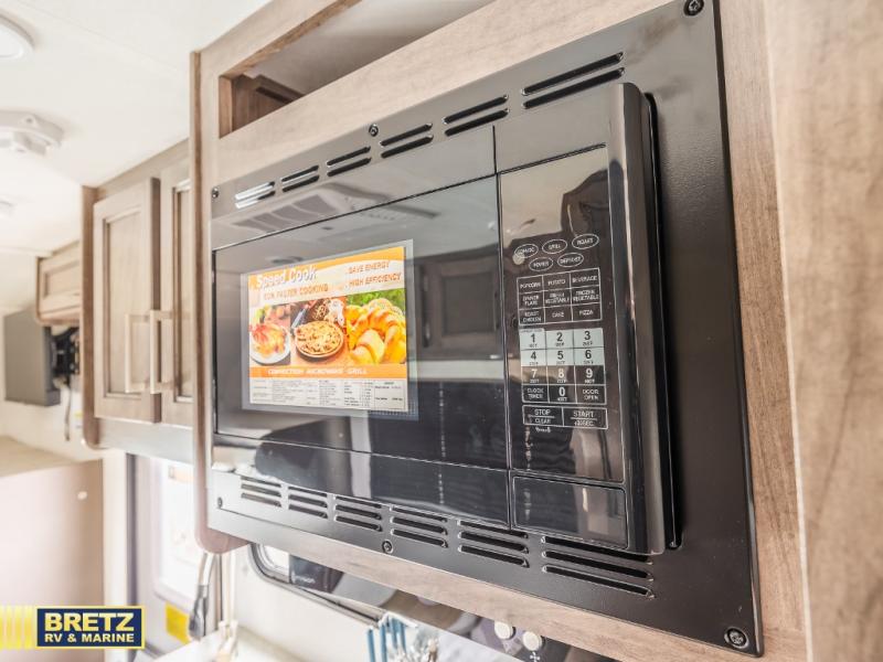 Make your trips complete in this coach that can sleep four to five each night. There is a cab-over bunk with a 750 lb. capacity for guests, and an RV queen bed slide out in the rear corner bedroom. The booth dinette can be used to dine at, play games, and even sleep an additional guest or two little ones. A two-burner cooktop comes standard in the kitchen, along with a convection microwave, a stainless-steel sink, and a 10-cu. ft. refrigerator. You will also appreciate having a full bath on board, and the 13' electric awning outside will provide a place to relax with a cold drink!