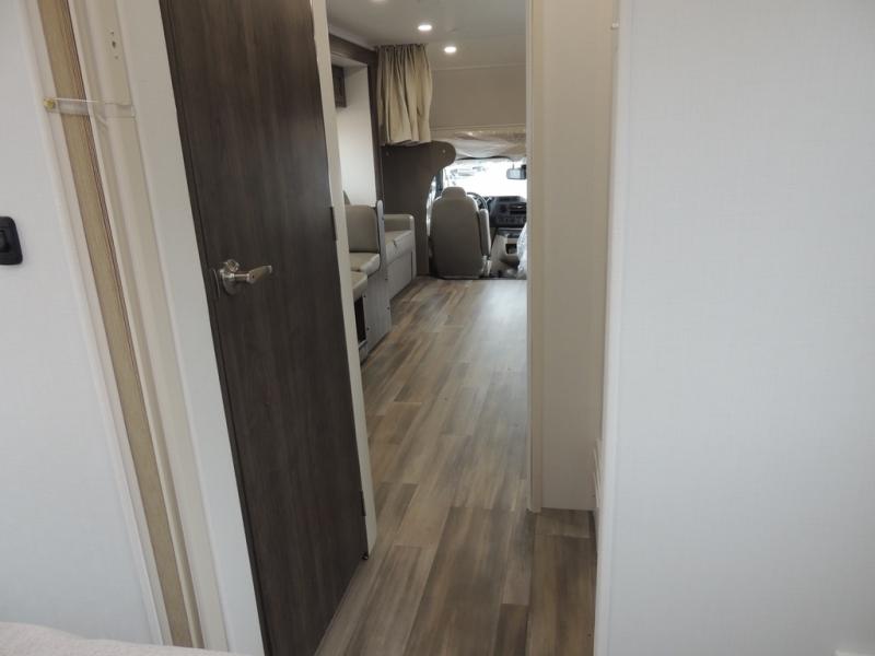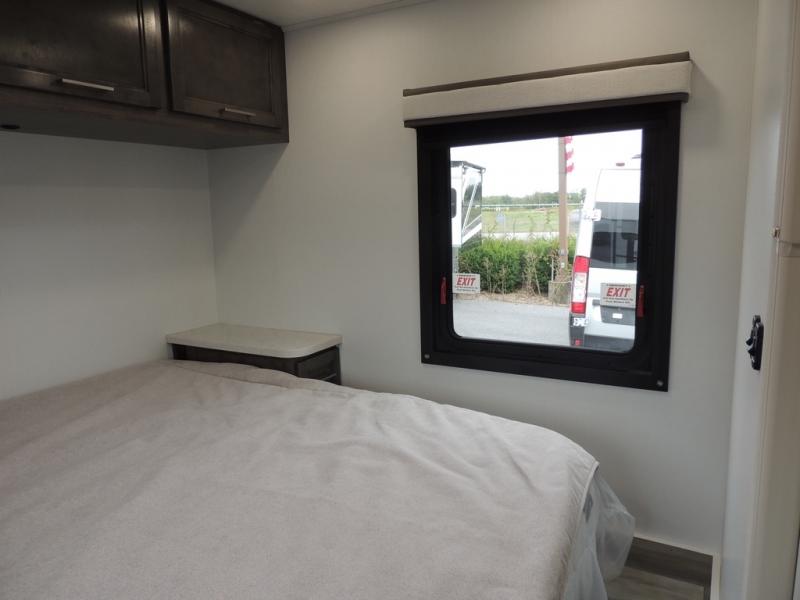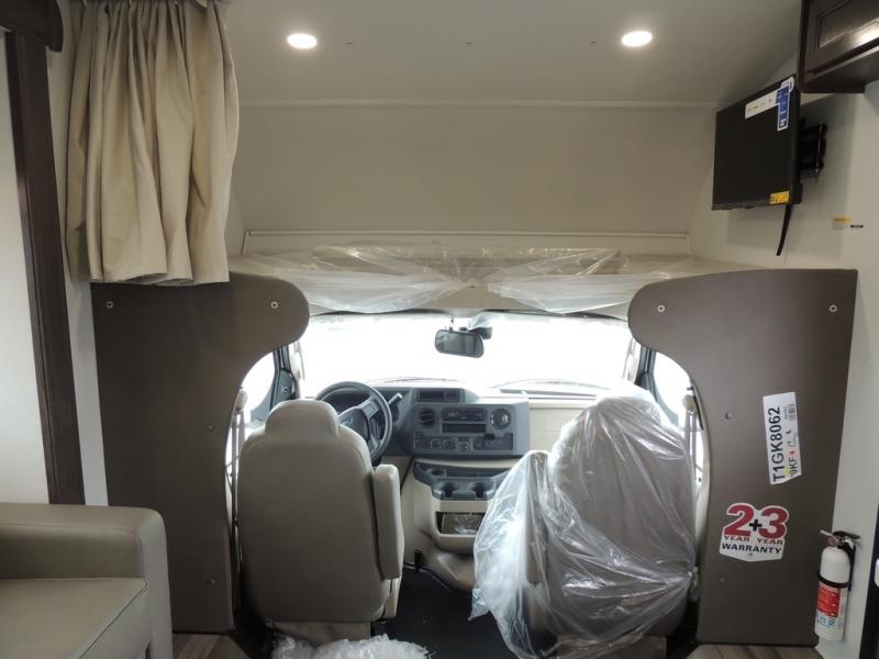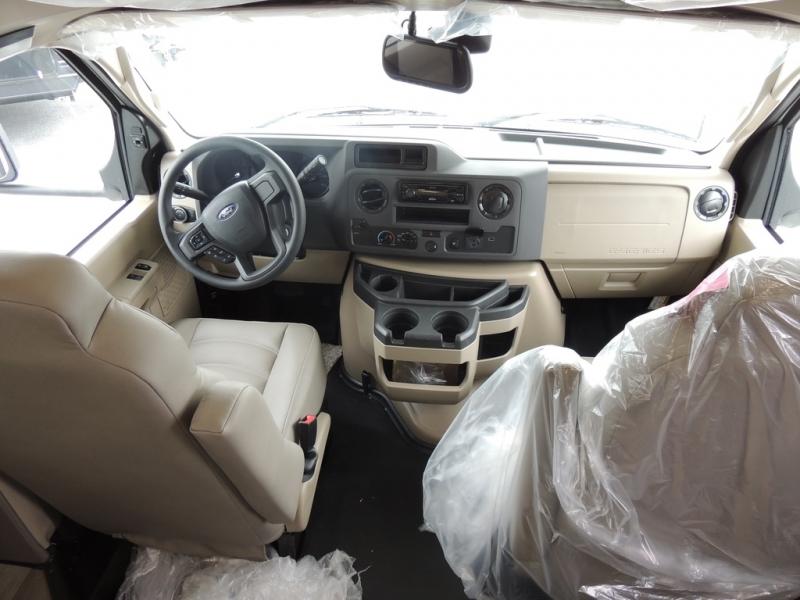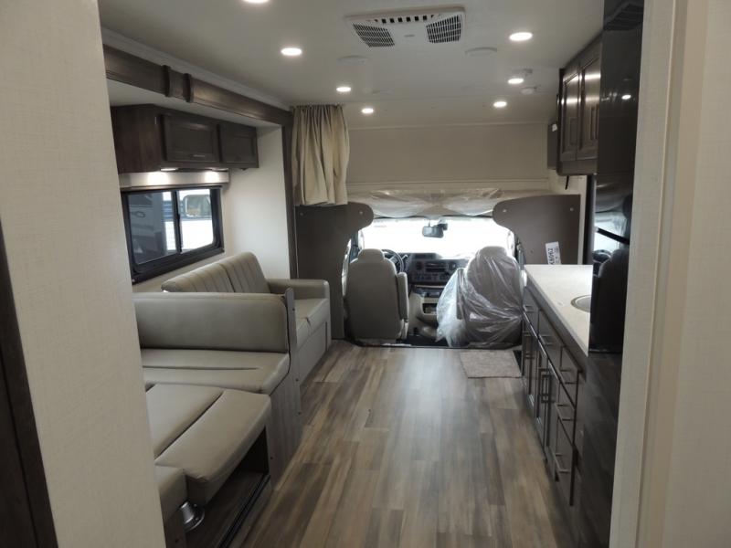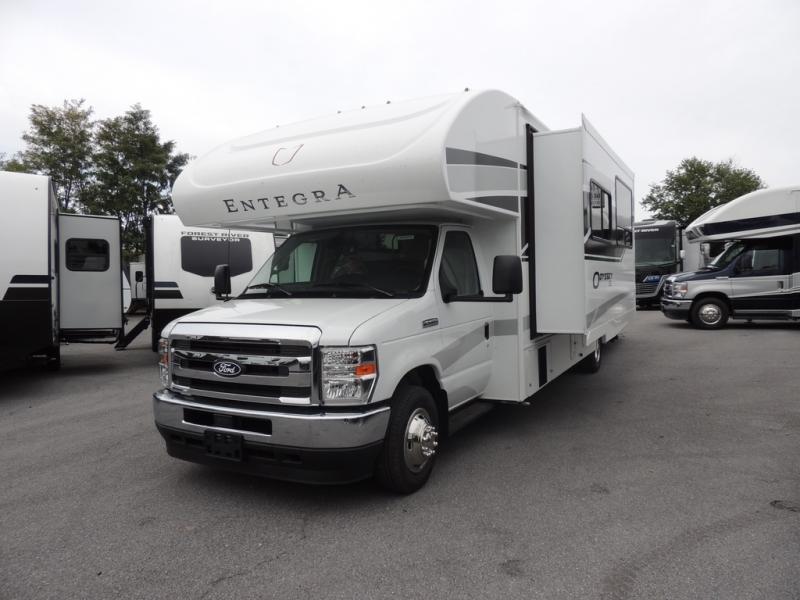 The Odyssey SE Class C gas motorhome by Entegra Coach is constructed with TuffShell vacuum-bond laminated sidewalls, a one-piece, seamless fiberglass front cap, and bead-foam insulation for added durability and strength. Whether you choose a model with a Ford E-350 chassis, Ford E-450 or Chevy 4500 chassis, you will get a durable coach made to last. The driver will also love the power steering, tilt steering wheel, and auxiliary start switch. The 7' interior ceiling height will provide plenty of space to stretch out and the high-intensity, recessed LED lights will make your space feel more like home. All of your power needs will be met with a 4,000-watt generator and 12V house battery, plus there is a 13.5K BTU A/C and 30K BTU furnace to keep you comfortable all year long. There are a couple additions you might want to add to further customize your Odyssey SE, like the optional automatic hydraulic leveling jacks and the optional 200W solar panel for some off-grid camping!