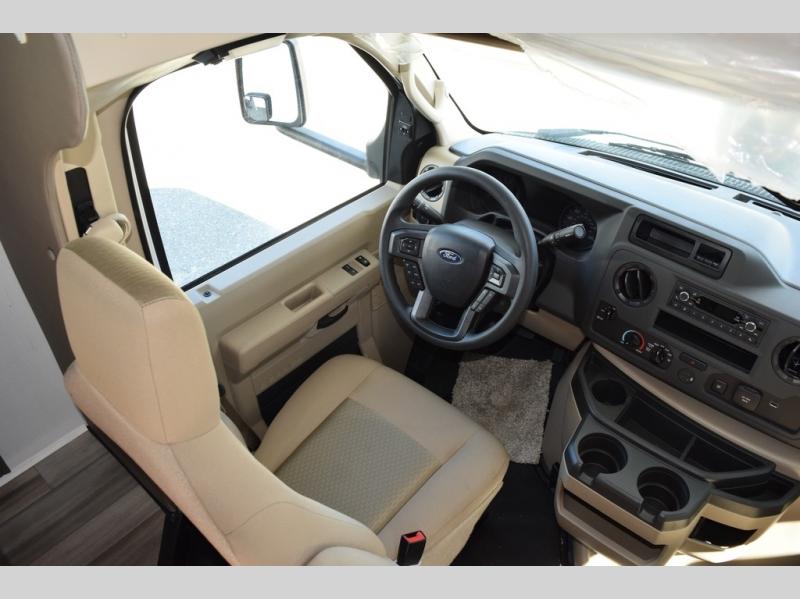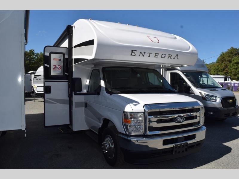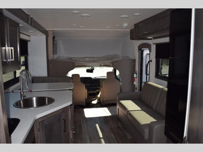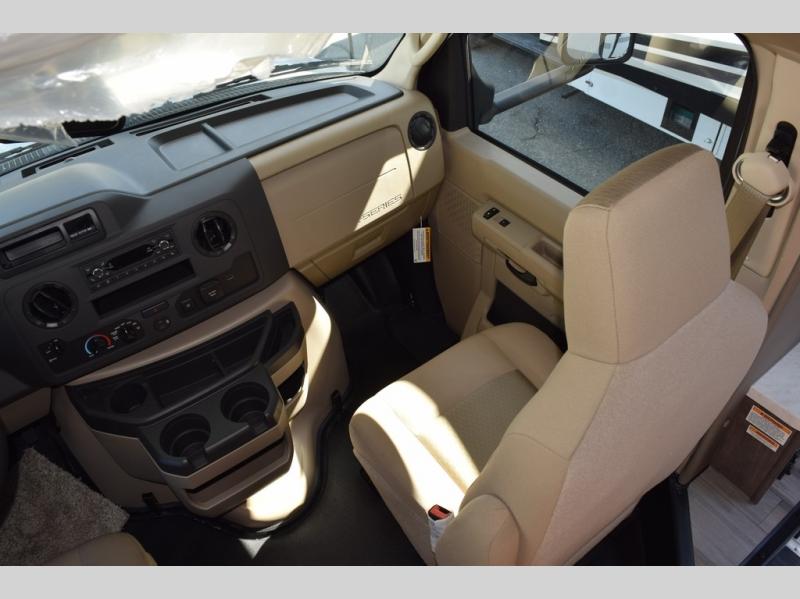 The Odyssey SE Class C gas motorhome by Entegra Coach is constructed with TuffShell vacuum-bond laminated sidewalls, a one-piece, seamless fiberglass front cap, and bead-foam insulation for added durability and strength. Whether you choose a model with a Ford E-350 chassis or Chevy 4500 chassis, you will get a durable coach made to last. The driver will also love the power steering, tilt steering wheel, and auxiliary start switch. The 7' interior ceiling height will provide plenty of space to stretch out and the high-intensity, recessed LED lights will make your space feel more like home. All of your power needs will be met with a 4,000-watt generator and 12V house battery, plus there is a 13.5K BTU A/C and 30K BTU furnace to keep you comfortable all year long. There are a couple additions you might want to add to further customize your Odyssey SE, like the optional automatic hydraulic leveling jacks and the optional 200W solar panel for some off-grid camping!