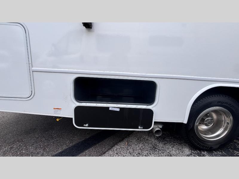 The Odyssey SE Class C gas motorhome by Entegra Coach is constructed with TuffShell vacuum-bond laminated sidewalls, a one-piece, seamless fiberglass front cap, and bead-foam insulation for added durability and strength. Whether you choose a model with a Ford E-350 chassis, Ford E-450 or Chevy 4500 chassis, you will get a durable coach made to last. The driver will also love the power steering, tilt steering wheel, and auxiliary start switch. The 7' interior ceiling height will provide plenty of space to stretch out and the high-intensity, recessed LED lights will make your space feel more like home. All of your power needs will be met with a 4,000-watt generator and 12V house battery, plus there is a 13.5K BTU A/C and 30K BTU furnace to keep you comfortable all year long. There are a couple additions you might want to add to further customize your Odyssey SE, like the optional automatic hydraulic leveling jacks and the optional 200W solar panel for some off-grid camping!