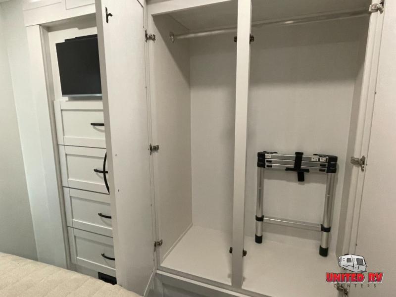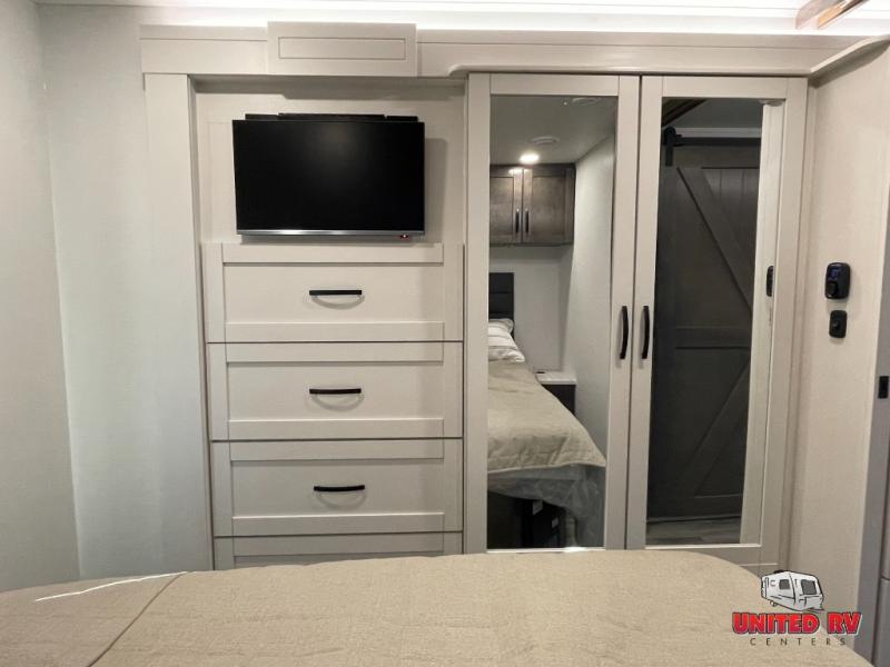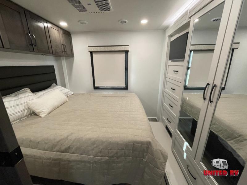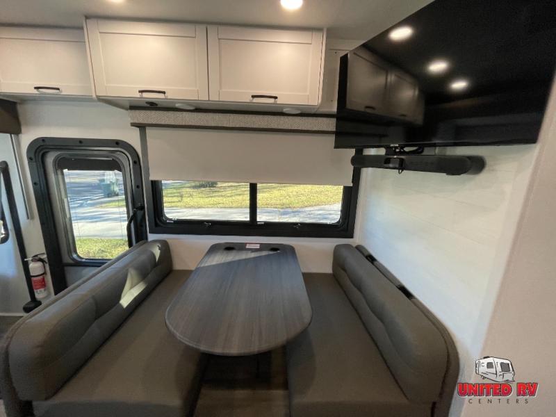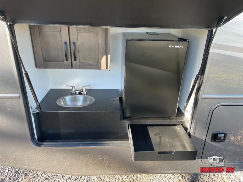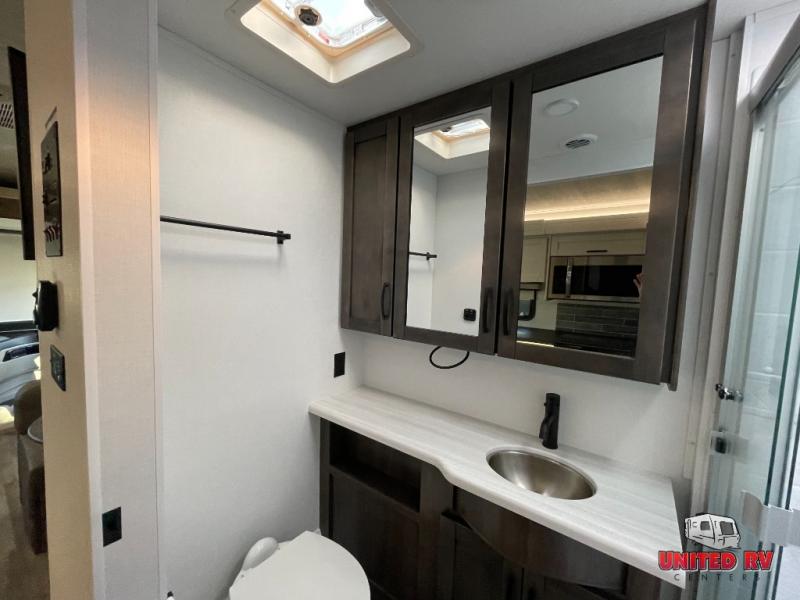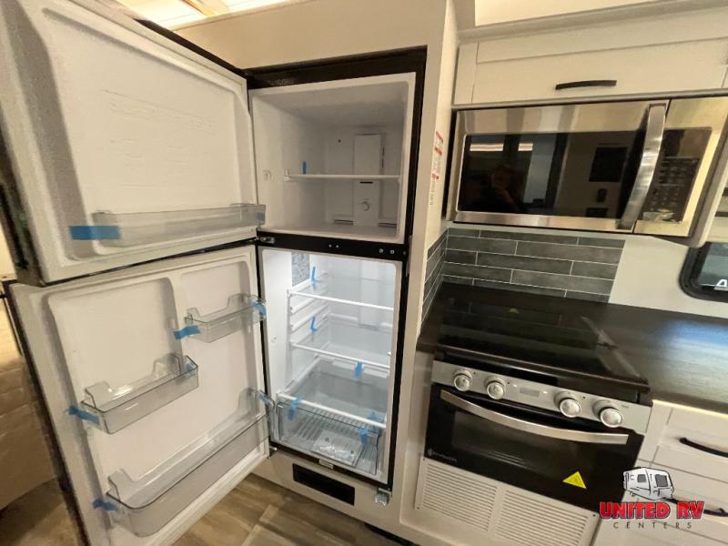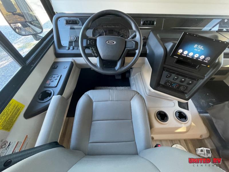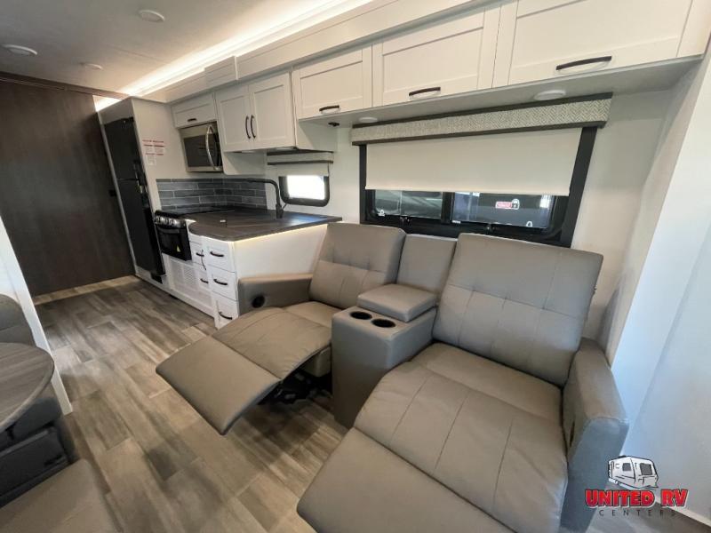 This Vision Class A gas motorhome has excellent interior living space with a full-wall slide! You'll fully enjoy the kitchen and the amenities it provides, like a residential-size microwave, a 10 cu. ft. 12V refrigerator, a Furrion all-in-one cooktop and oven, and a pantry. The 68" jack-knife sofa and booth dinette offer you lounging space after a full day of traveling, and the 39" LED HD Smart TV offers you some entertainment when you don't want to be active anymore. The exterior portion of this coach is also excellently appointed with an outdoor kitchen, exterior entertainment center with LED HD Smart TV, radio, and speakers, and a 23' electric awning with LED lights. You also have great choices of options for this coach with the optional theater seating, LED HDTV in the bedroom, or drop-down overhead cab bunk.