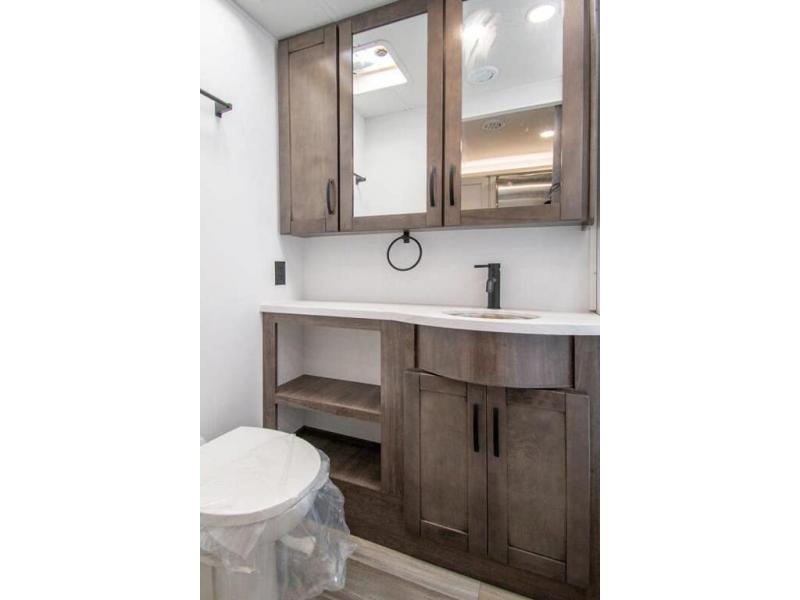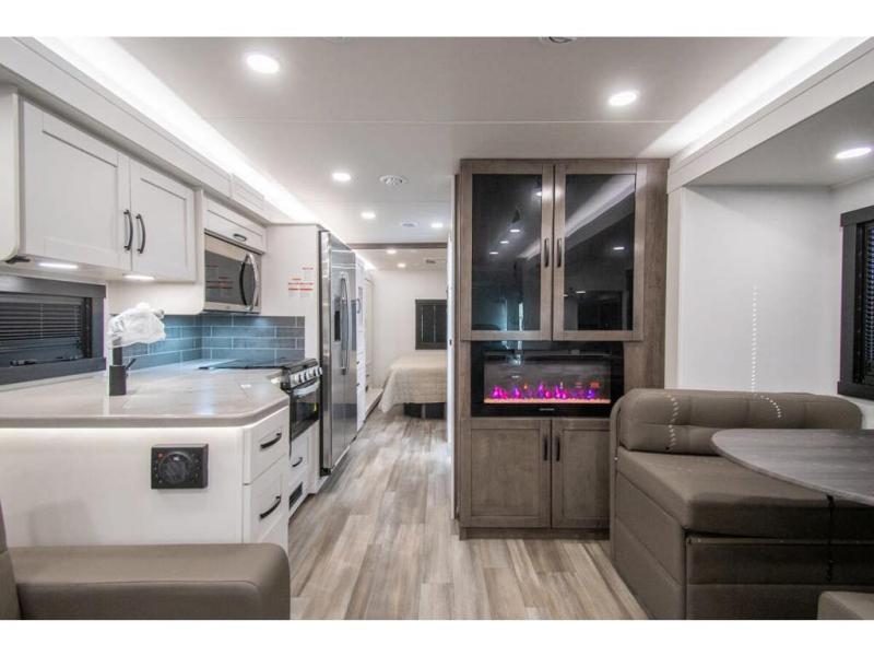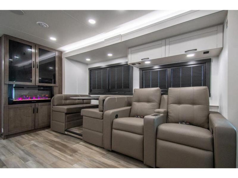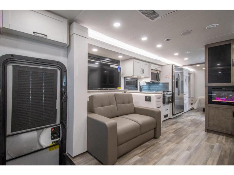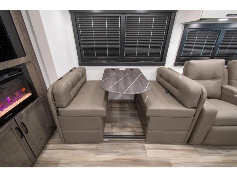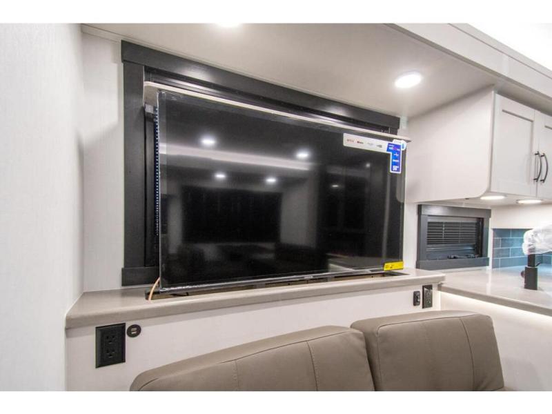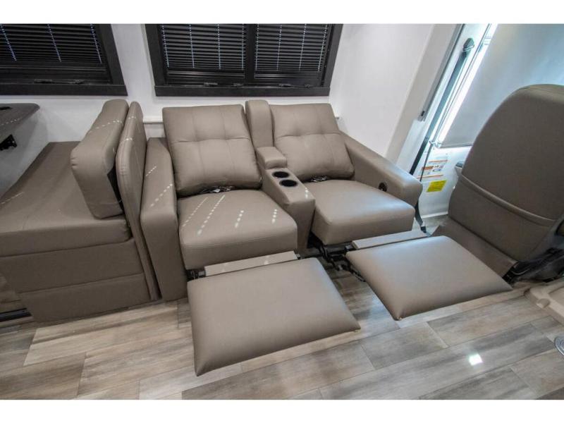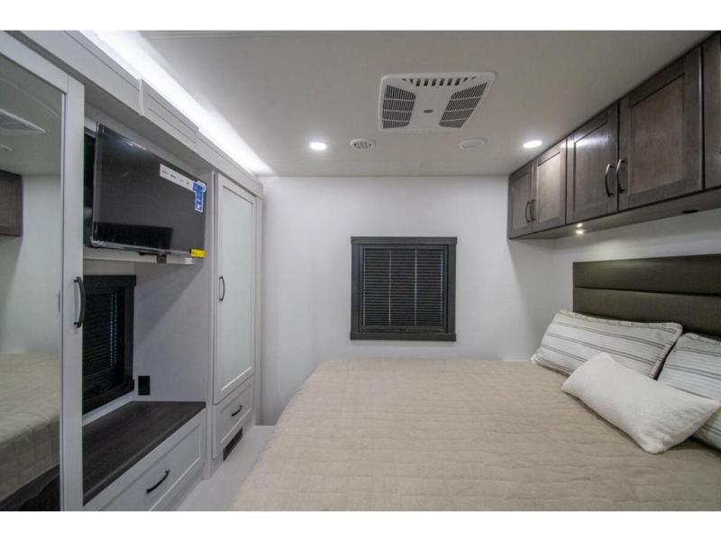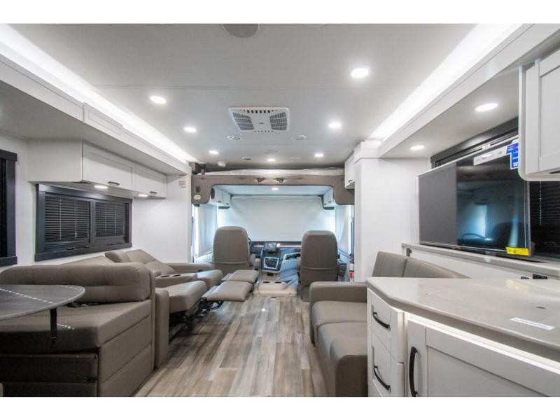 What a fun time you'll have exploring, socializing, and venturing out to new destinations in this Vision XL Class A gas motorhome! There is plenty of space on the interior to spread out and relax with the full-wall slide and the opposing slide in the living area, and you will be able to invite friends in to hang out since you can offer them seating on the 42" x 70" booth dinette, 60" theater sofa, and 60" tri-fold sofa. Play a group game, or put on the football game with the 50" LED Smart TV on lift. After you've entertained everyone, you can retire to your own RV king bed back in the private bedroom. And you can even invite your friends to stay the night if you want because the dinette and sofa will provide some extra sleeping space.