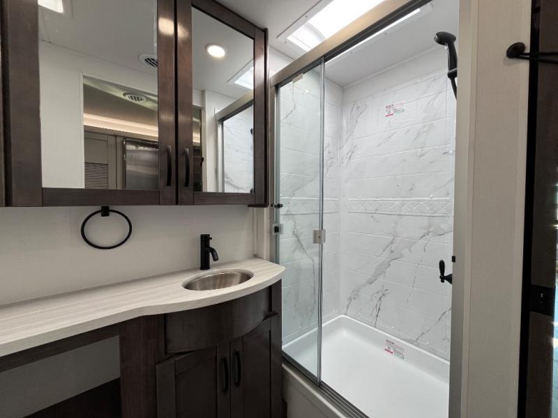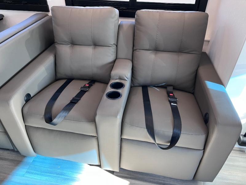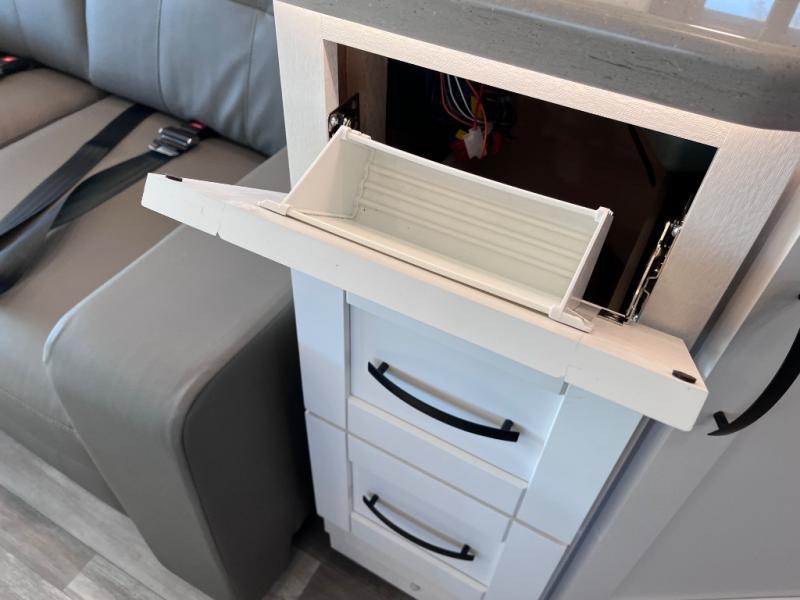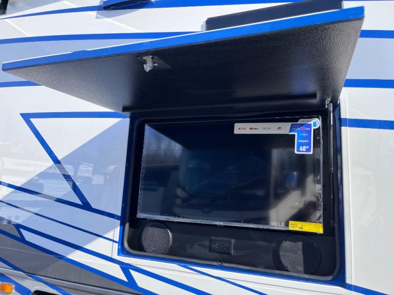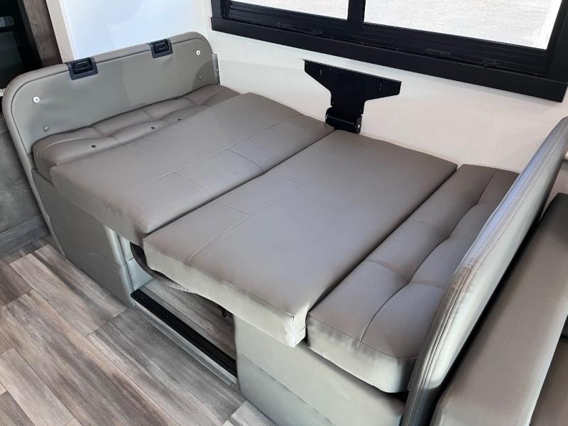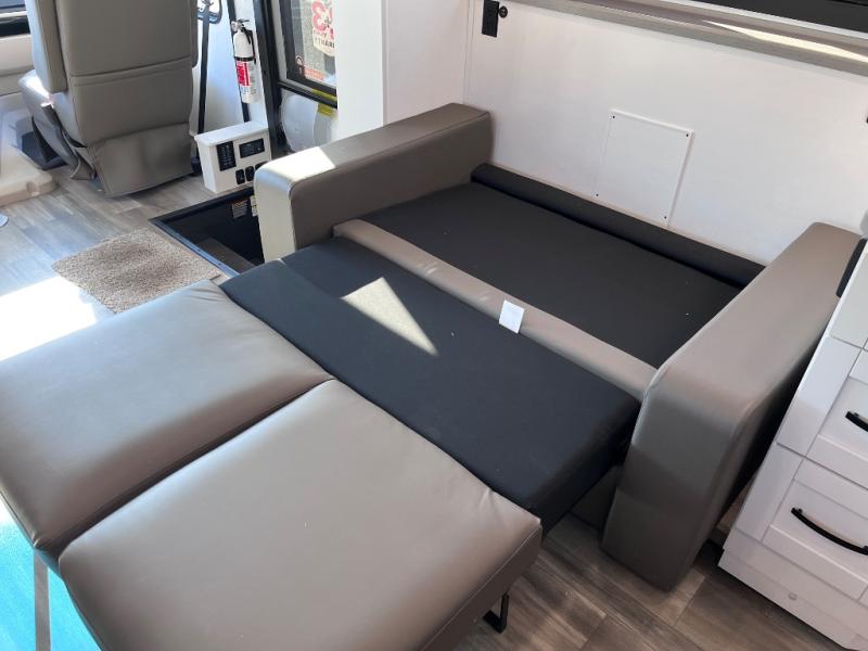What a fun time you'll have exploring, socializing, and venturing out to new destinations in this Vision XL Class A gas motorhome! There is plenty of space on the interior to spread out and relax with the full-wall slide and the opposing slide in the living area, and you will be able to invite friends in to hang out since you can offer them seating on the 42" x 70" booth dinette, 60" theater sofa, and 60" tri-fold sofa. Play a group game, or put on the football game with the 50" LED Smart TV on lift. After you've entertained everyone, you can retire to your own RV king bed back in the private bedroom. And you can even invite your friends to stay the night if you want because the dinette and sofa will provide some extra sleeping space.