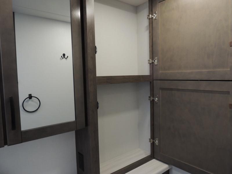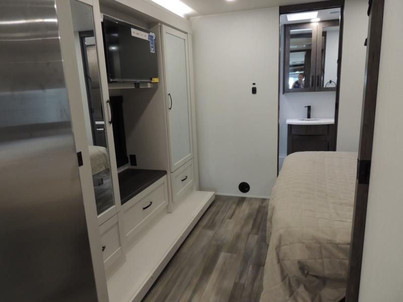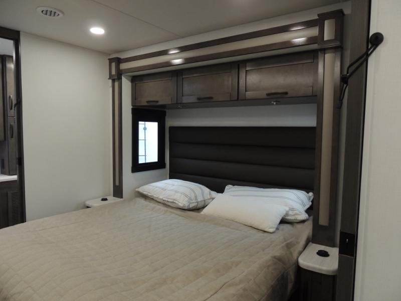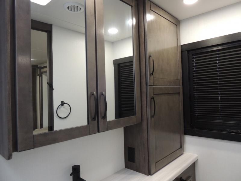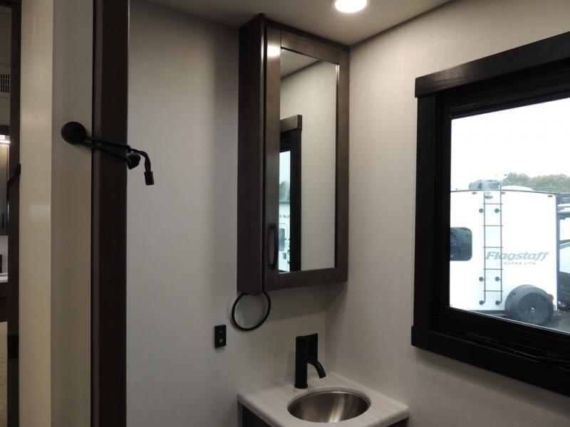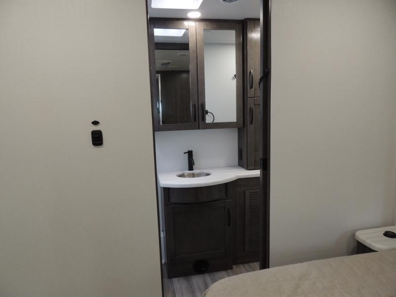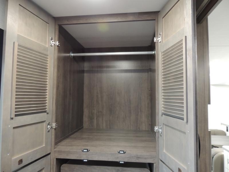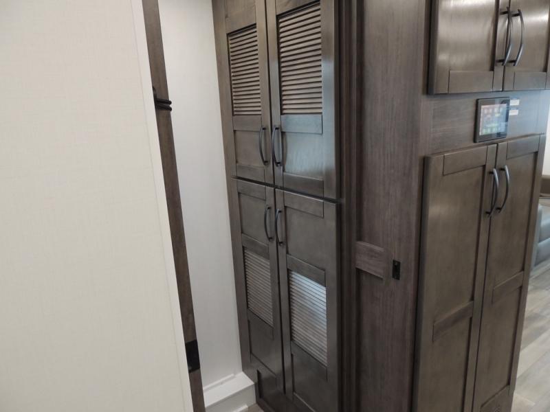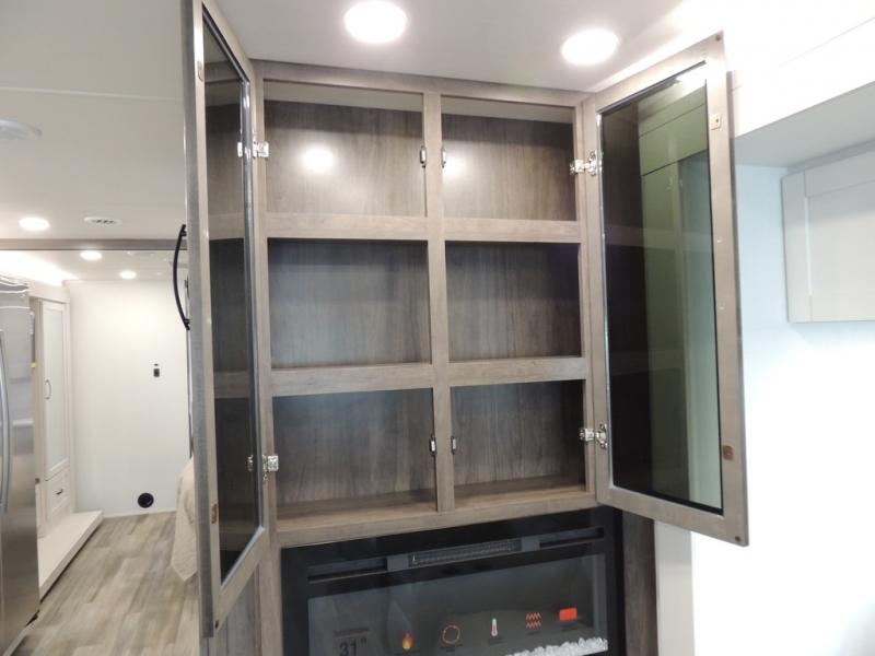 Picture yourself sitting in one of the swivel cab seats with your favorite beverage resting on the removable cockpit table in this Vision XL Class A gas motorhome! When you enter this coach, you will be greeted with a warm and comfortable living environment that has a theater sofa, hide-a-bed sofa, and 38" x 70" booth dinette for lounging, and the fireplace and 50" LED HD Smart TV will add to the coziness. For storing your favorite foods, you can use the residential refrigerator and pantry, and your dishes can be kept in the hutch or overhead cabinets. Conveniently located across from the kitchen is the half bathroom which has an area prepped for an optional washer/dryer, and the walk-around king-size bed in the master suite creates an exceptionally comfortable space to spend your nights.
