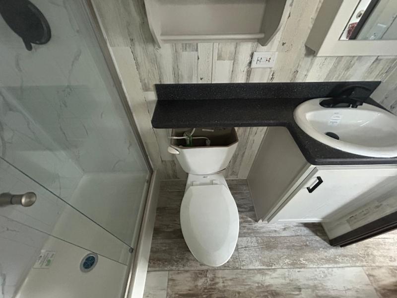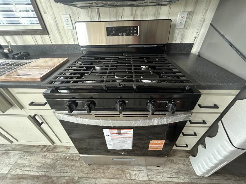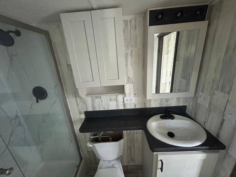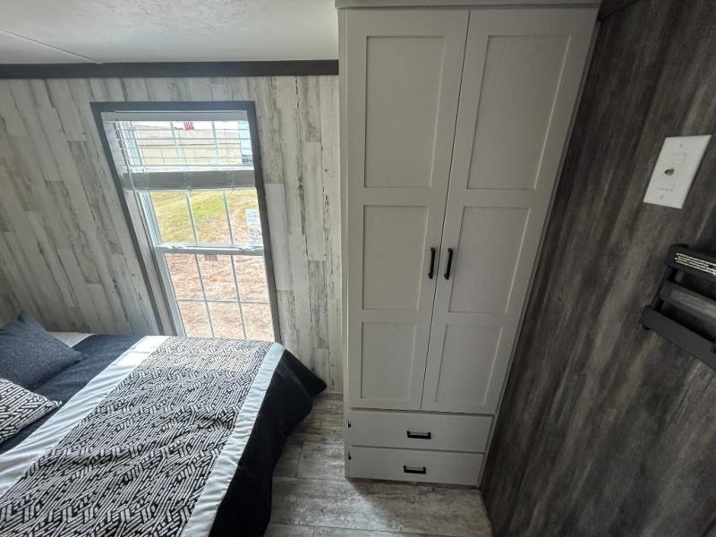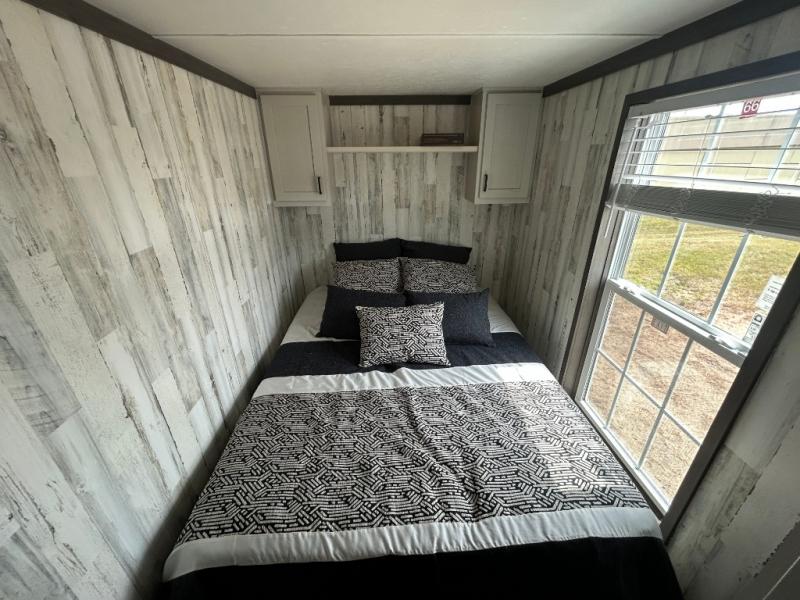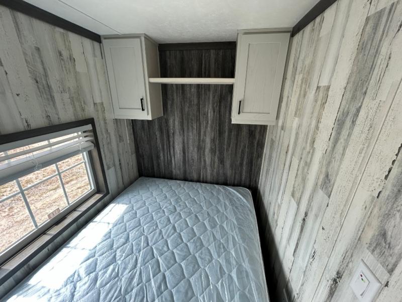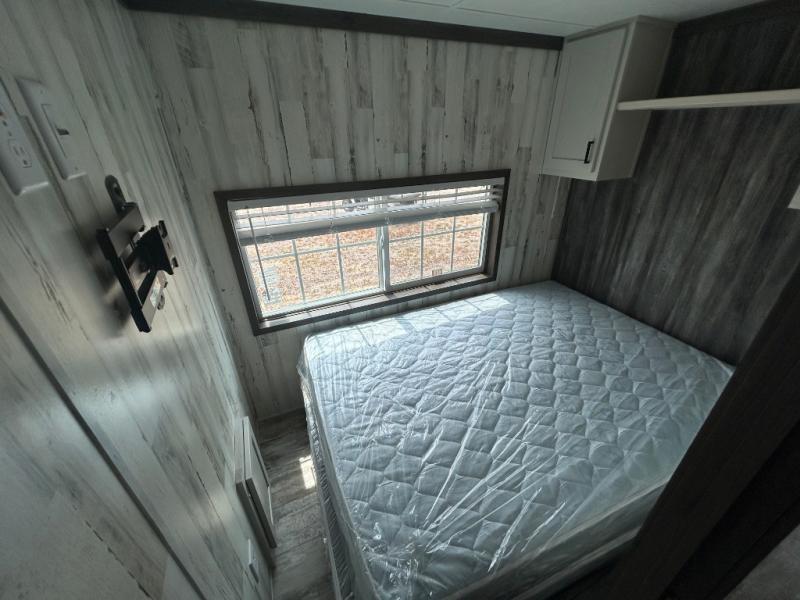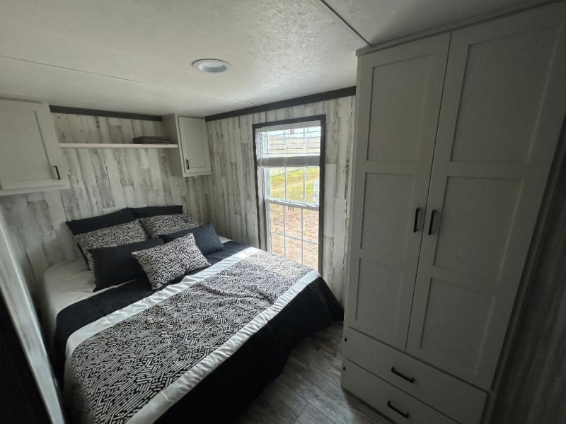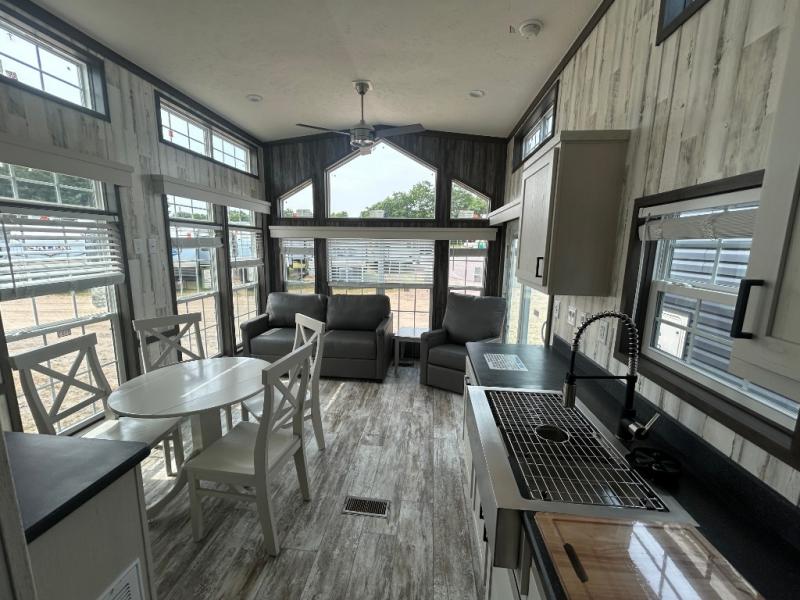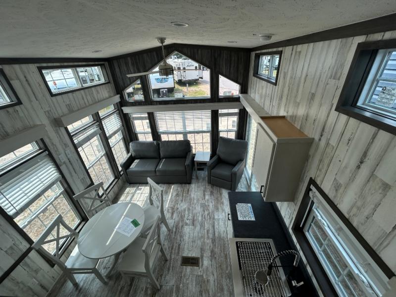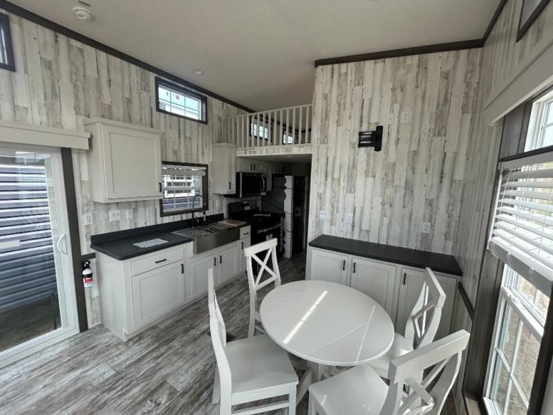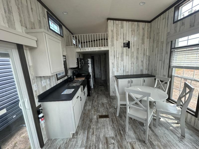 This park model is perfect when camping with friends or making this your home away from home. There are two private bedrooms with storage space, a full bath where everyone can freshen up, plus a loft with two loft areas for the little ones. The kitchen will allow the cook to cook meals each day, and the pantry will be perfect for paper goods and snacks. Once dinner is made, relax in the front living area!