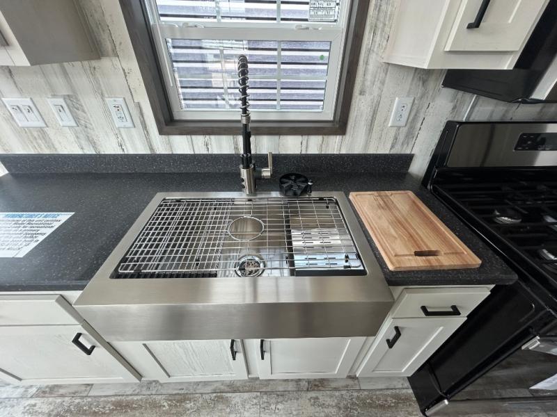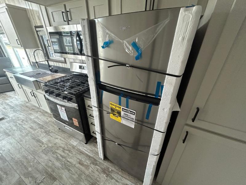 With any Country Manor park model by Fairmont you will enjoy years of use and memories thanks to the solid construction materials, such as an Owens Corning architectural shingled roof, a woven shepweave underbelly, a HomeGuard exterior weather house wrap wind barrier, and more! The Kinro windows will allow plenty of natural light in, and the residential crown molding will give that touch of luxury. Each model includes stainless steel Whirlpool appliances, high pressure dual laminated countertops and backsplash, and European style hidden cabinet hinges. These models also feature 1/2" residential textured drywall cathedral ceilings for better insulation and sound proofing, and the three decor choices will allow you to customize the interior to your liking.