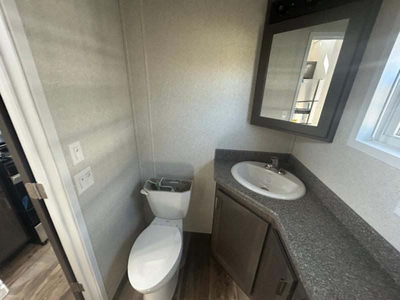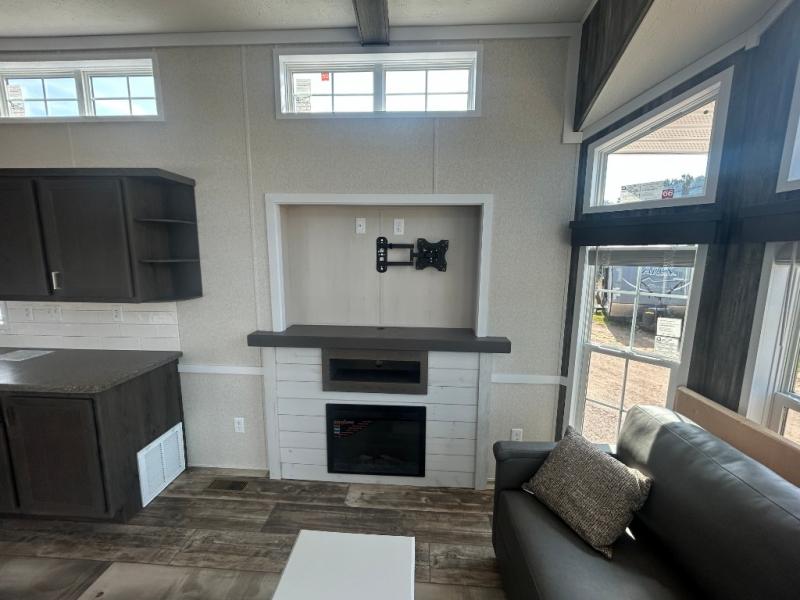 This park model is perfect for extended stays or full time living! You can relax in the front living room on the sofa and recliner, then head to the kitchen to make dinner on the four burner gas range or in the microwave. The full bath includes a one-piece spacious shower, lighted medicine cabinet and exhaust fan to keep air moving. And you'll love having your own space in the rear bedroom! You can also choose model 100185M if you are needing a loft for more sleeping space!