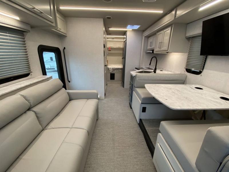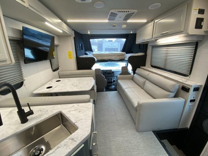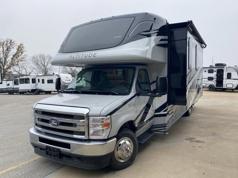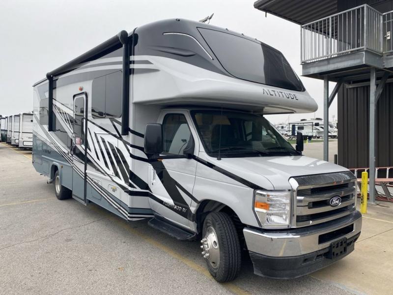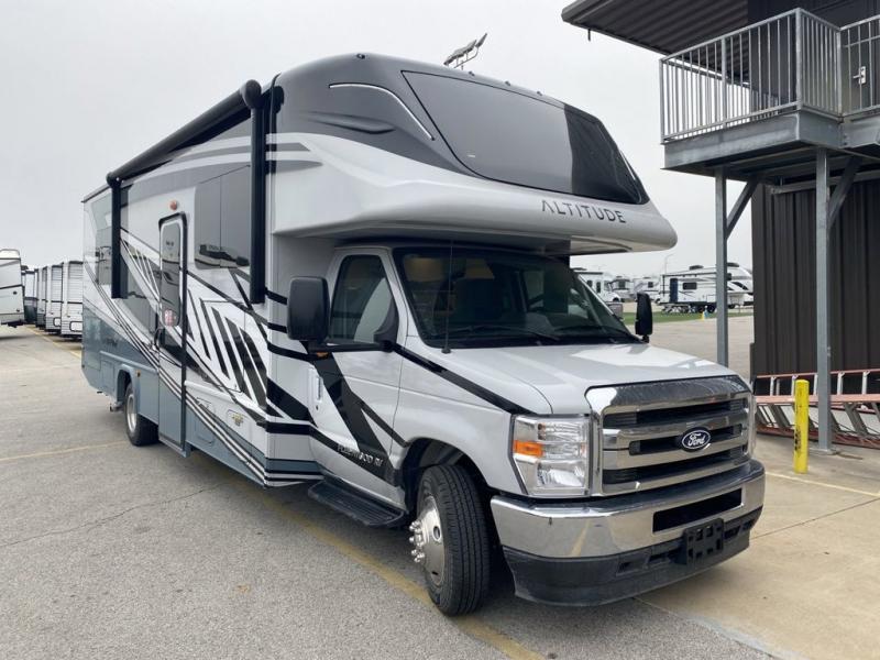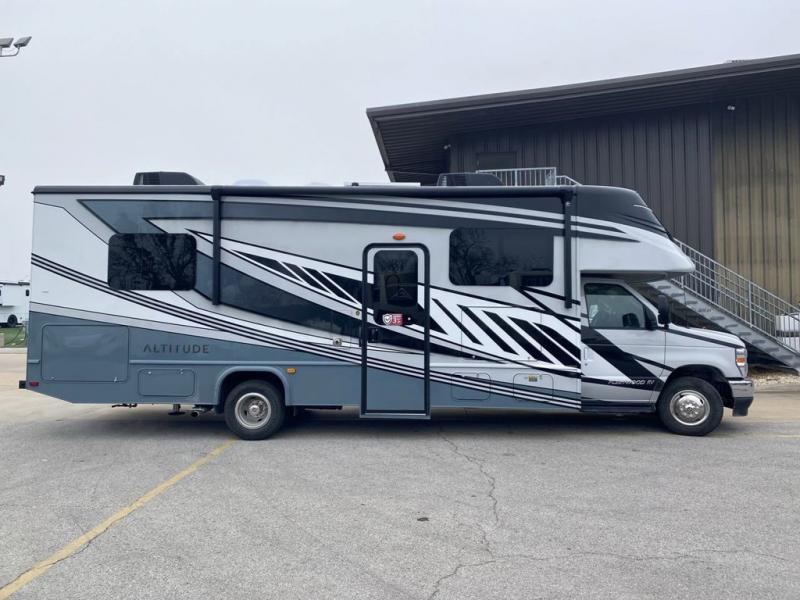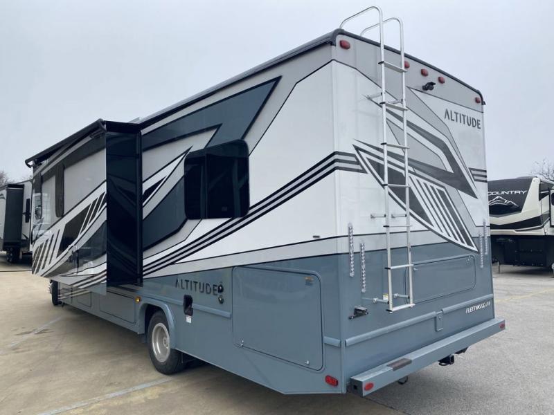 With any Altitude Class C gas motorhome by Fleetwood RV, you will enjoy unrivaled performance, unbeatable storage, and luxury at every turn! You will love the journey just as much as the destination with a Ford 7.3L V8 engine and a 6-speed automatic transmission. Each model features a fully encased aerodynamic inspired front bunk cap, tuff-ply thermal polyolefin engineered vinyl composite roofing, and modern exterior vinyl graphics. There are also oversized exterior storage compartments, a premium tankless water heater, and a 1000w upgraded inverter to keep you going. The durable marine grade flooring will stand up over the test of time, and you're going to love the premium galley appliances!