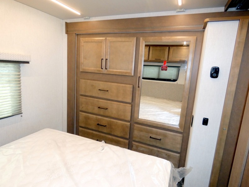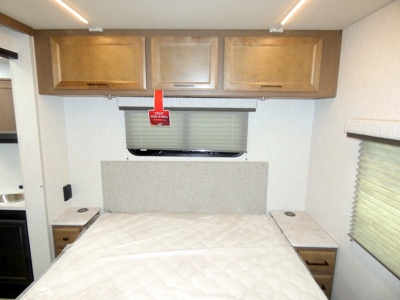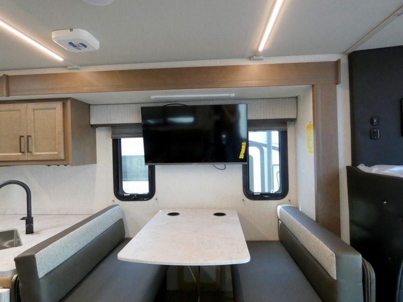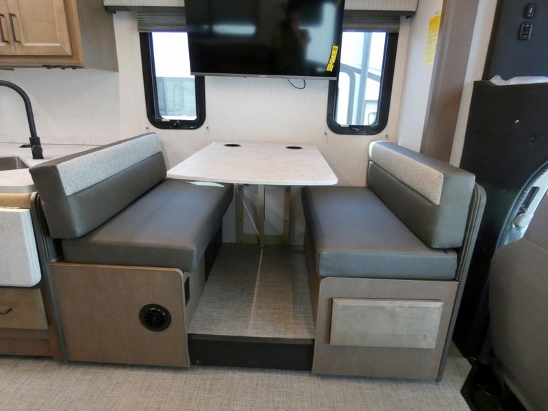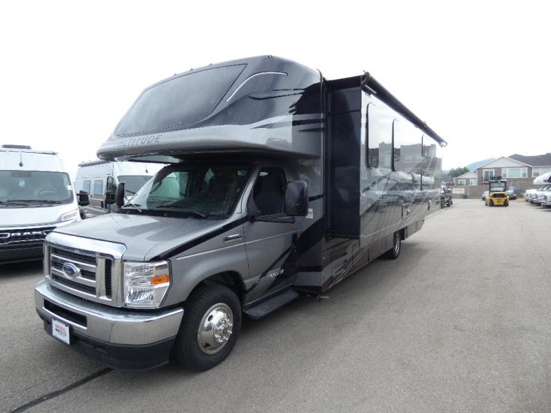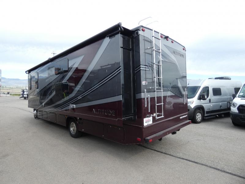 With any Altitude Class C gas motorhome by Fleetwood RV, you will enjoy unrivaled performance, unbeatable storage, and luxury at every turn! You will love the journey just as much as the destination with reclining back captain's chairs and side view cameras, plus there is a Ford 7.3L V8 engine for power you can feel. Each model features painted steel frame construction with a Powerlock System ll that interlocks the walls to the roof for added durability, along with Vacu-Bond aluminum framed sidewalls, roof, and floor. Outside, you'll find automatic hydraulic leveling jacks, patio lighting, slam latch luggage door handles, and a Winegard Air 360+ that will allow you to stay connected as you travel. Head inside to find Surf-X countertops, slide out fascia with coordinating interior wood color, hidden hinge cabinet doors, kitchen backsplash, and many more comforts!