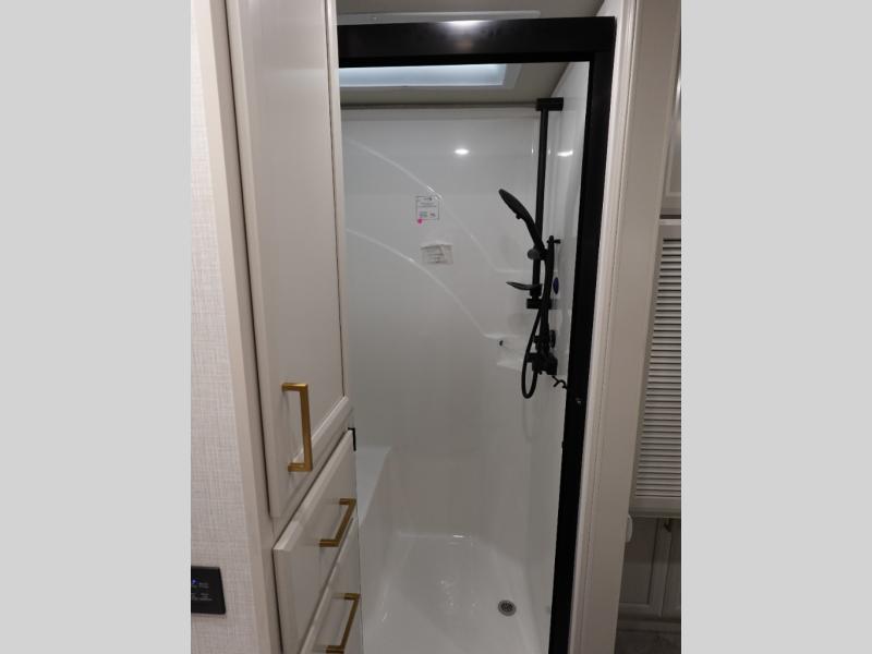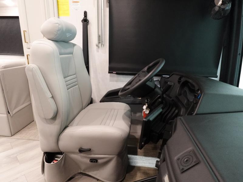 With any Bounder Class A gas motorhome by Fleetwood, you can travel in luxury and style with the power you desire to enjoy the ride as much as the destination. Beginning with the Power Platform Ford chassis, the enhanced safety features such as remote, power-heated mirrors with turn indicators and side cameras, and the color monitor for side and rear cameras, traveling is made easy. There is also an automotive one-piece windshield, a 100W solar panel, and WiFi Ranger Sky4 that come standard. A 5.5kW Onan generator will keep you powered up and you'll find plenty of storage both inside and out for personal belongings, camp gear, and more. Inside you will love the look of the durable, hand-laid Tarkett flooring, the energy efficient LED flush mount ceiling lighting, and the fiberglass shower with a glass door. Choose a Bounder Class A gas coach to discover even more stand-out features!