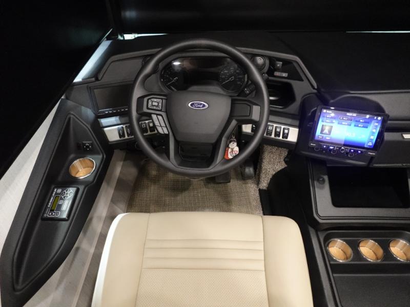 With any Bounder Class A gas motorhome by Fleetwood, you can travel in luxury and style with the power you desire to enjoy the ride as much as the destination. Beginning with the Power Platform Ford chassis, the enhanced safety features such as remote, power-heated mirrors with turn indicators and side cameras, and the color monitor for side and rear cameras, traveling is made easy. There is also an automotive one-piece windshield, a 100W solar panel, and WiFi Ranger Sky4 that come standard. A 5.5kW Onan generator will keep you powered up and you'll find plenty of storage both inside and out for personal belongings, camp gear, and more. Inside you will love the look of the durable, hand-laid Tarkett flooring, the energy efficient LED flush mount ceiling lighting, and the fiberglass shower with a glass door. Choose a Bounder Class A gas coach to discover even more stand-out features!