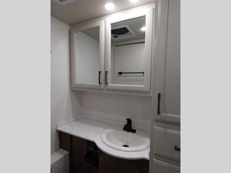 With any Bounder Class A gas motorhome by Fleetwood, you can travel in luxury and style with the power you desire to enjoy the ride as much as the destination. Beginning with the Power Platform Ford chassis, the enhanced safety features such as remote, power-heated mirrors with turn indicators and side cameras, and the color monitor for side and rear cameras, traveling is made easy. There is also an automotive one-piece windshield, a 100W solar panel, and WiFi Ranger Sky4 that come standard. A 5.5kW Onan generator will keep you powered up and you'll find plenty of storage both inside and out for personal belongings, camp gear, and more. Inside you will love the look of the durable, hand-laid Tarkett flooring, the energy efficient LED flush mount ceiling lighting, and the fiberglass shower with a glass door. Choose a Bounder Class A gas coach to discover even more stand-out features!