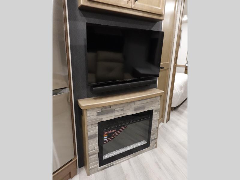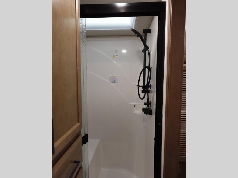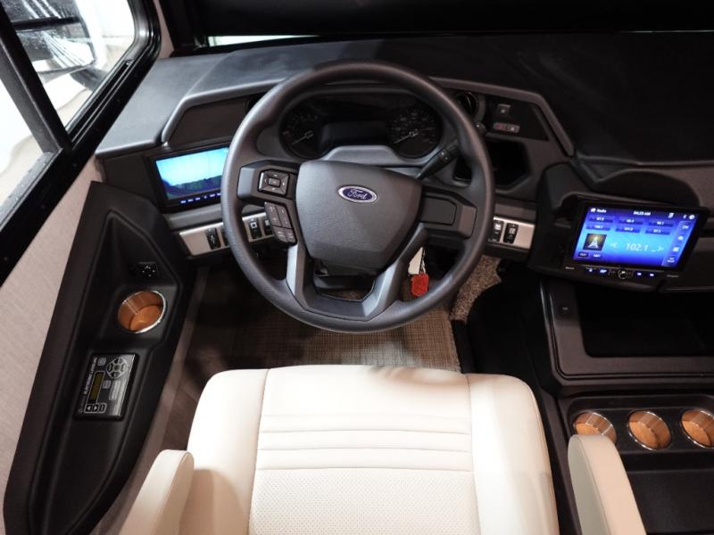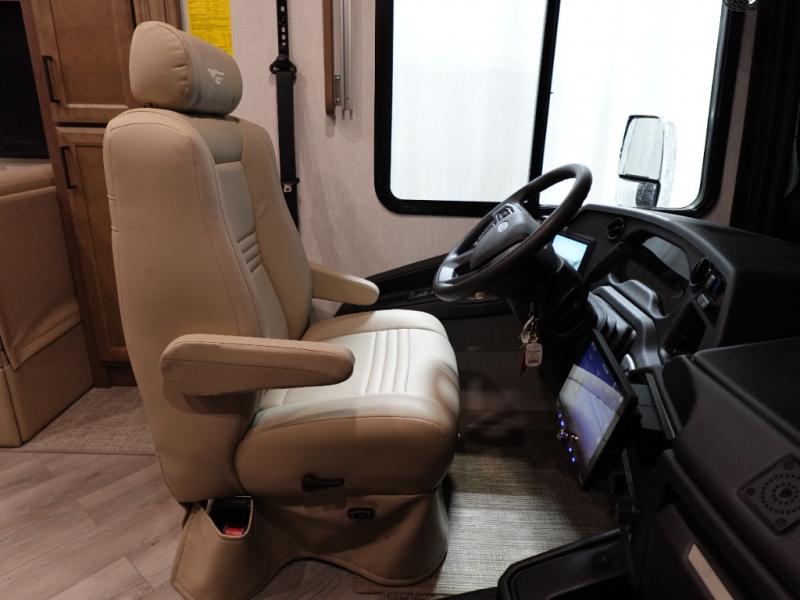 With any Bounder Class A gas motorhome by Fleetwood, you can travel in luxury and style with the power you desire to enjoy the ride as much as the destination. Beginning with the Power Platform Ford chassis, the enhanced safety features such as remote, power-heated mirrors with turn indicators and side cameras, and the color monitor for side and rear cameras, traveling is made easy. There is also an automotive one-piece windshield, a 100W solar panel, and WiFi Ranger Sky4 that come standard. A 5.5kW Onan generator will keep you powered up and you'll find plenty of storage both inside and out for personal belongings, camp gear, and more. Inside you will love the look of the durable, hand-laid Tarkett flooring, the energy efficient LED flush mount ceiling lighting, and the fiberglass shower with a glass door. Choose a Bounder Class A gas coach to discover even more stand-out features!
