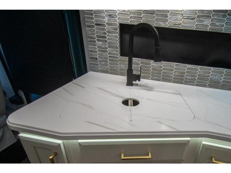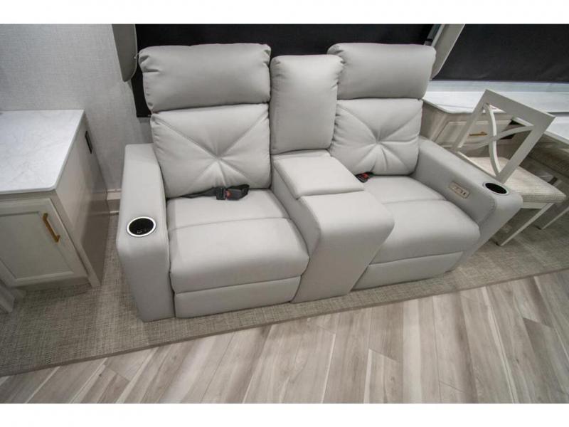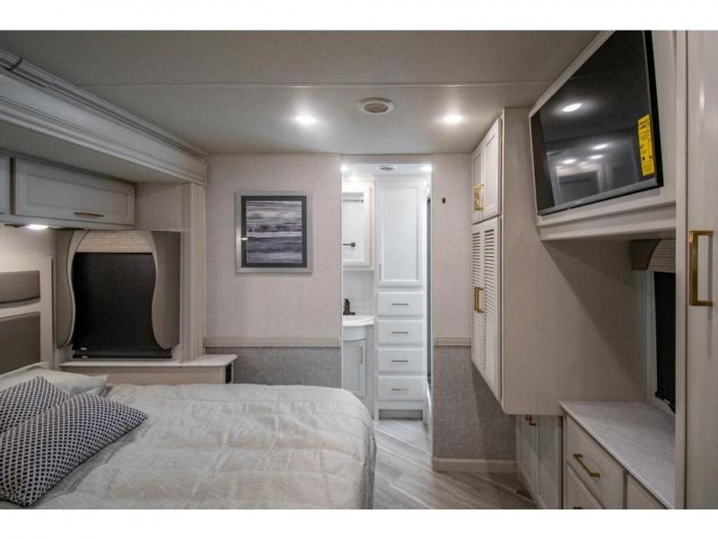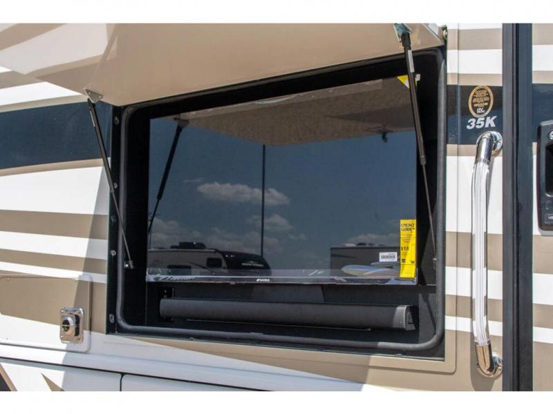 When you are ready to travel the countryside, this coach will get you there in comfort with luxury and residential features that you deserve. The driver and passenger will love the automotive style dash with color monitor and workstation, plus the pedestal table in between. Once you have setup for the evening, you might enjoy reclining back in the chairs or sitting on the jackknife sofa that offers guests a place to stay the night, along with the rest EZ dinette and the optional Hide-A-Loft power overhead bunk if you added that feature. Your guests can use the mid-coach half bath while you have your own master suite with a king bed slide and storage, plus a full rear bathroom all to yourself.