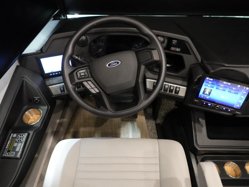 With any Bounder Class A gas motorhome by Fleetwood, you can travel in luxury and style with the power you desire to enjoy the ride as much as the destination. Beginning with the Power Platform Ford chassis, the enhanced safety features such as remote, power-heated mirrors with turn indicators and side cameras, and the color monitor for side and rear cameras, traveling is made easy. There is also an automotive one-piece windshield, a 100W solar panel, and WiFi Ranger Sky4 that come standard. A 5.5kW generator will keep you powered up and you'll find plenty of storage both inside and out for personal belongings, camp gear, and more. Inside you will love the look of the durable, hand-laid Tarkett flooring, the energy efficient LED flush mount ceiling lighting, and the fiberglass shower with a glass door. Choose a Bounder Class A gas coach to discover even more stand-out features!