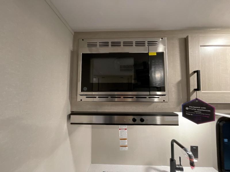 Comfortability, usability, and quality is what you will find in each one of these Forest River Aurora Light travel trailers! They are designed with a superior build and packed full with industry leading, functional, and distinctive standard features. The diamond plate rock guard will protect your unit from road debris and the nitrogen filled radial tires, which keep their pressure longer, offer better fuel economy. You will also find upgraded JBL Elite exterior speaker outside, an electric awning with multicolor lights and remote, plus flush mount baggage doors for easy packing. The interiors are beautifully designed with matte black kitchen and bath faucets, black nightshades in the living room, and GE kitchen appliances!