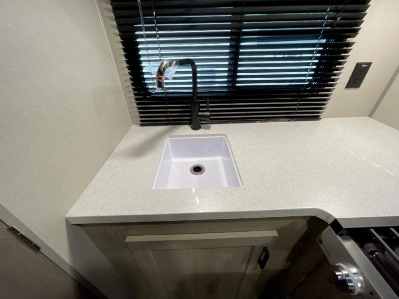 Comfortability, usability, and quality is what you will find in each one of these Forest River Aurora Light travel trailers! They are designed with a superior build and packed full with industry leading, functional, and distinctive standard features. The diamond plate rock guard will protect your unit from road debris and the nitrogen filled radial tires, which keep their pressure longer, offer better fuel economy. You will also find upgraded JBL Elite exterior speaker outside, an electric awning with multicolor lights and remote, plus flush mount baggage doors for easy packing. The interiors are beautifully designed with matte black kitchen and bath faucets, black nightshades in the living room, and GE kitchen appliances!
