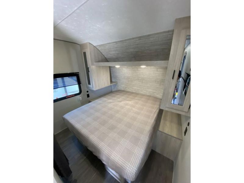 Comfortability, usability, and quality is what you will find in each one of these Forest River Aurora Light travel trailers! They are designed with a superior build and packed full with industry leading, functional, and distinctive standard features. The diamond plate rock guard will protect your unit from road debris and the nitrogen filled radial tires, which keep their pressure longer, offer better fuel economy. You will also find upgraded JBL Elite exterior speaker outside, an electric awning with multicolor lights and remote, plus flush mount baggage doors for easy packing. The interiors are beautifully designed with matte black kitchen and bath faucets, black nightshades in the living room, and GE kitchen appliances!