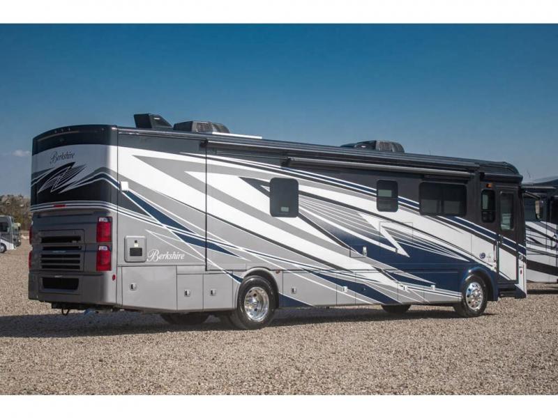Experience the luxury and power behind the Berkshire Class A diesel motorhome by Forest River. Each model includes a Cummins ISB turbo diesel 6.7 liter, 360 HP engine that sits on a Freightliner XCR raised-rail chassis. The Allison 3000MH 6-speed transmission and V-Series front/rear suspension will provide an exceptional driving experience, and the exterior full-body paint features five different choices for maximum eye appeal. Each Berkshire is constructed with a vacuum bonded roof, sidewalls, and floors, an aluminum tube frame, and a Tru-Brace Anti Camber chassis support system for a motorhome that will last for years to come. Each model also includes a "soft touch" padded ceiling, manual day/night shades, polished porcelain tile throughout, and many more interior comforts!