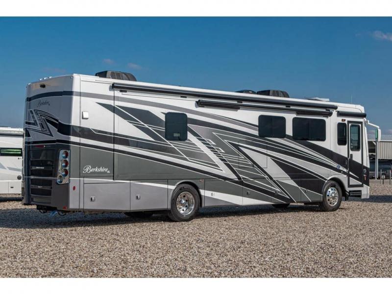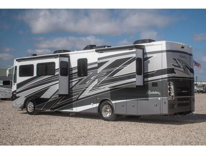 Experience everyday comfort and luxury with each one of these Forest River RV Berkshire XL Class A diesel motorhomes! The Cummins ISL turbo diesel 380 HP engine will power your unit to any destination and the raised rail Freightliner XCR chassis and Tru-Brace anti-chamber support bracing will hold it together. The Oasis hydronic heat creates even heating throughout the inside and provides an instant hot water, and the electric heated tile floors will make your feet happy. A one piece fiberglass roof covers the unit and block foam polystyrene insulation in the walls, roof, and floors mean you can travel all year around. Inside, you'll love the polished porcelain tile throughout, along with window valances, living room ceiling crown trim, and hardwood raised panel cabinet doors to name a few comforts.