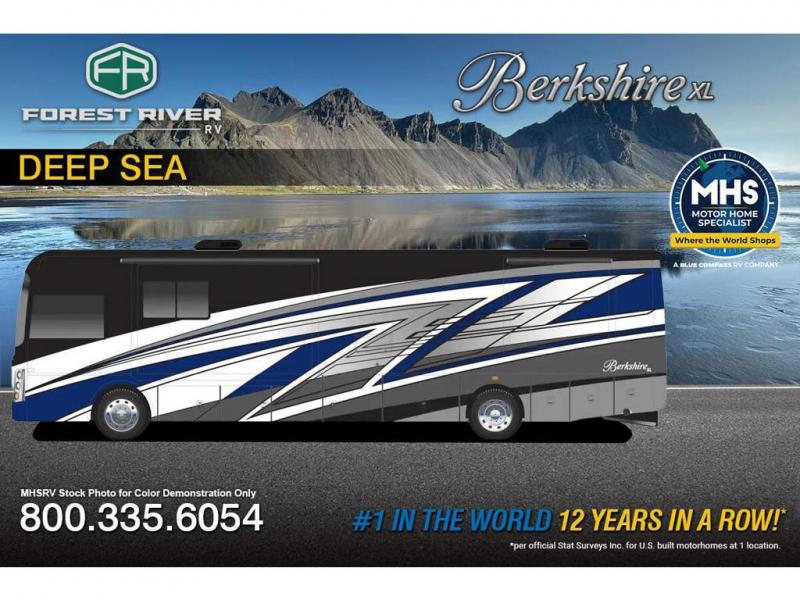 Experience everyday comfort and luxury with each one of these Forest River RV Berkshire XL Class A diesel motorhomes! The Cummins ISL turbo diesel 380 HP engine will power your unit to any destination and the raised rail Freightliner XCR chassis and Tru-Brace anti-chamber support bracing will hold it together. The Oasis hydronic heat creates even heating throughout the inside and provides an instant hot water, and the electric heated tile floors will make your feet happy. A one piece fiberglass roof covers the unit and block foam polystyrene insulation in the walls, roof, and floors mean you can travel all year around. Inside, you'll love the polished porcelain tile throughout, along with window valances, living room ceiling crown trim, and hardwood raised panel cabinet doors to name a few comforts.