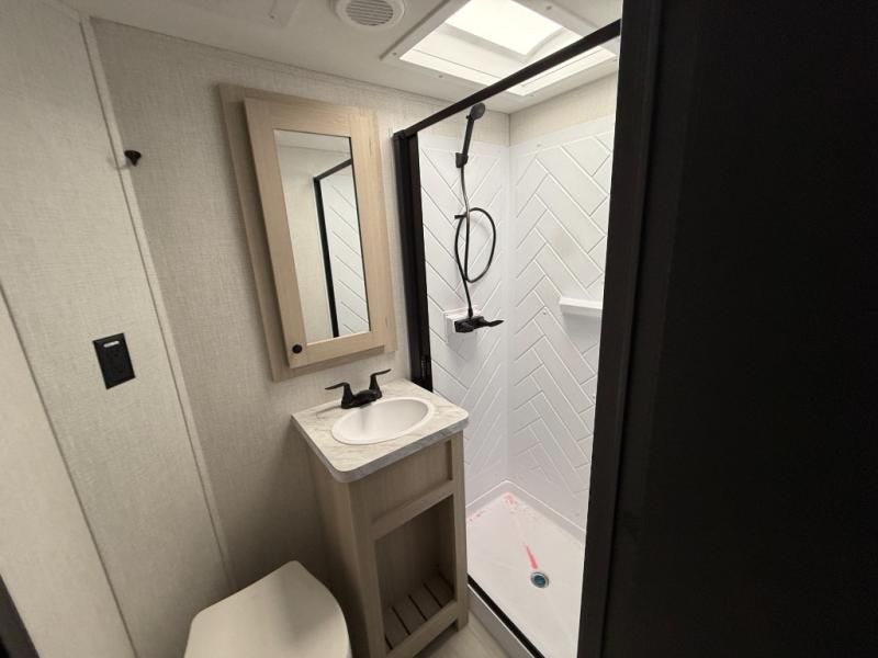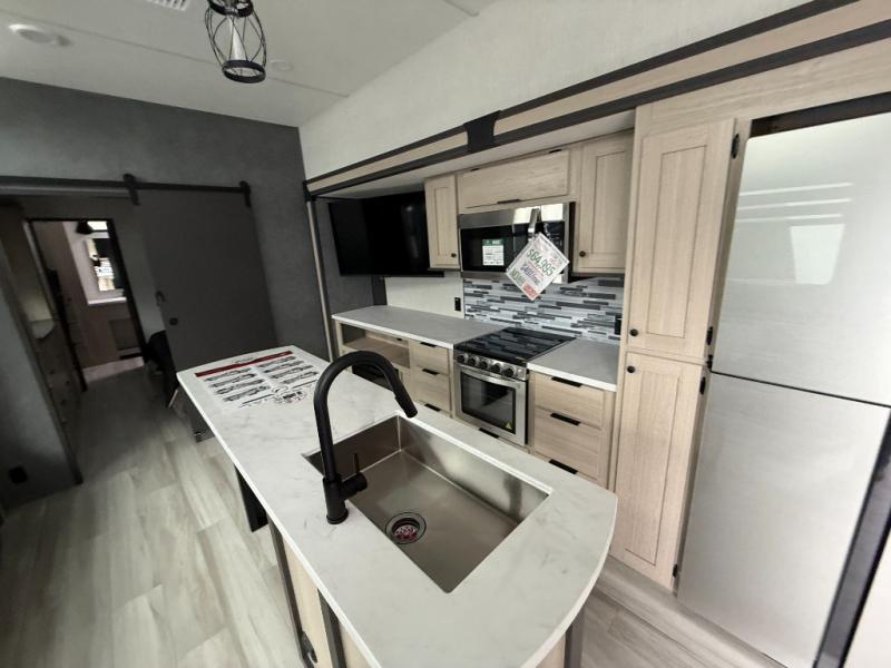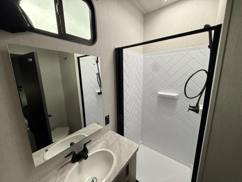 With any Cardinal fifth wheel by Forest River, you will enjoy affordable luxury at every turn. These models are constructed with residential fiberglass insulation in the roof and floor, a heated and enclosed underbelly armor, and a vacuum bonded, welded aluminum structure for added strength and durability. You will also find seamless roto-cast holding tanks, an outdoor shower, and 4-point auto leveling for quick and easy setup. There are carpet-free living spaces, residential backsplash, motion lighting throughout, and many more comforts!