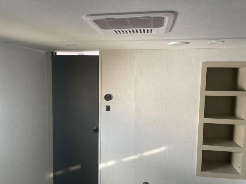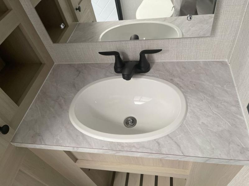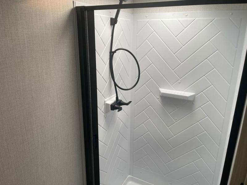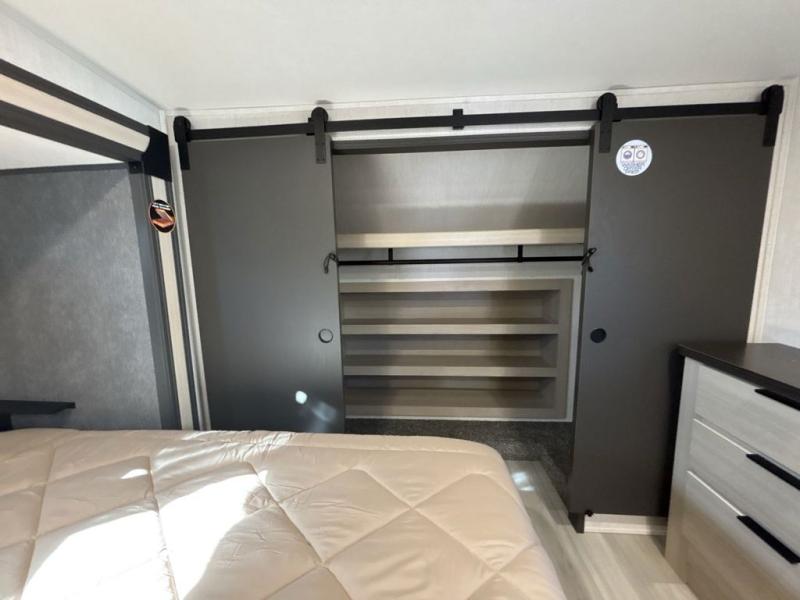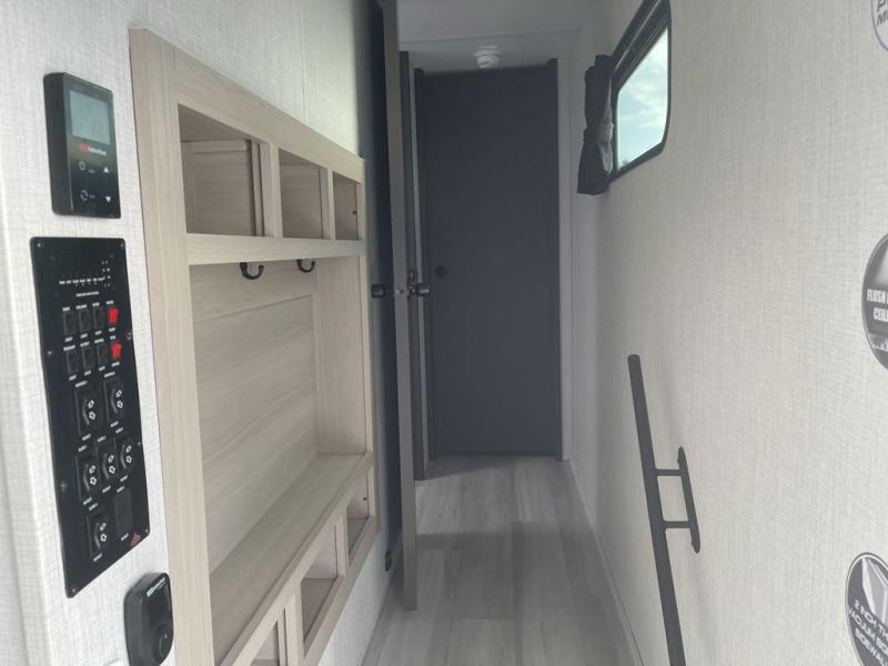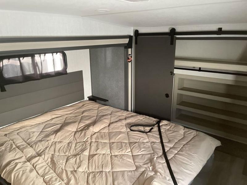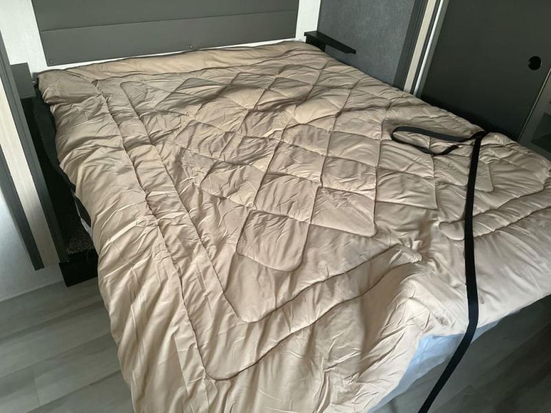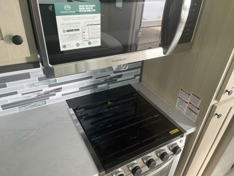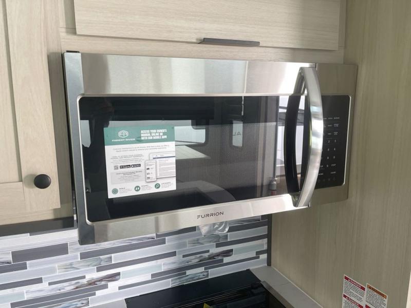 Wow! You won't believe the features found in this luxury fifth wheel that can sleep up to nine each night! Your guests or the kids will absolutely love the middle bunkroom with a hide-a-bed sofa and bunk beds plus a loft above for even more sleeping or storage space. There is also a desk/wardrobe here, which will allow you to utilize this space as an office as well! You'll have your own space in the front private bedroom on the king bed slide out, and there is a walk-in wardrobe to keep your clothes tidy. There is even washer and dryer prep for the option to keep those clothes clean! The chef of your group will have everything they need to prepare meals, including a 21" 2-in-1 oven range, an over-the-range microwave, a 16 cu. ft. 12V refrigerator, plus a kitchen island for more counter space. In the evenings, your crew can get cozy on the rear sofa and theater seats across from the entertainment center and fireplace, or you might just play a game at the hi-top table and chairs!