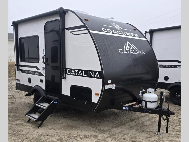 With any Catalina Summit Series 7' by Coachmen RV, you can create an easier adventure with the versatility and simplicity of the shorter lengths and lighter weights! Each includes a premium exterior graphics package, a smooth HD aluminum radius front, and EZ lube axles with leaf spring suspension. The exterior offers a heavy duty standard tongue jack, a diamond plate rock guard to protect against road debris, exterior RG-6 coax cabling and satellite prep, rear view camera prep, and flush mount baggage doors with radius corners for your outdoor gear. Inside, you will enjoy a premium JBL interior speaker, USB charging ports, seamless Thermofoil countertops throughout, a deep basin farm style sink for easy cleanup, and GE kitchen appliances. It's time to choose an affordable and maneuverable single axle trailer today!
