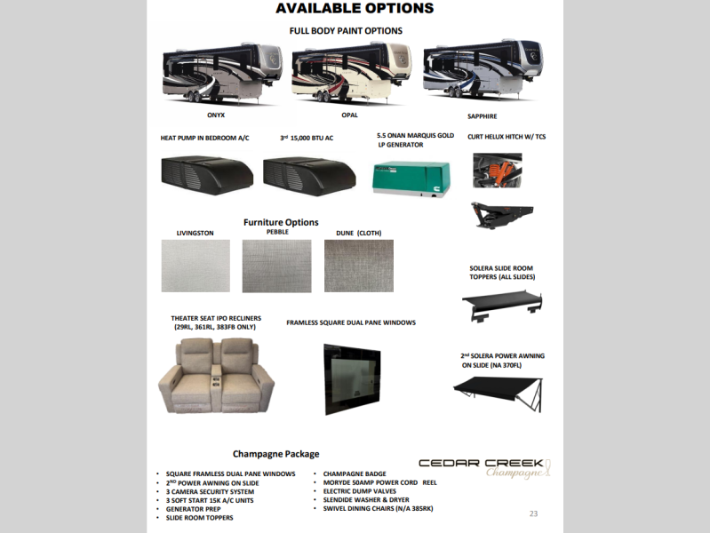 | Awning Info | 15' and 15' w/ LED Night Lighting |