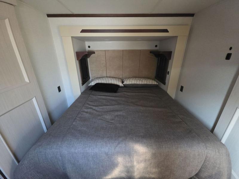 With any Cedar Creek fifth wheel by Forest River, you will find a quality-built RV with your comfort in mind! The all-aluminum super structure on 16" centers or less will provide a solid foundation to your fifth wheel, and the 3M bonded sidewalls will hold up and provide resistance to UV, heat, cold moisture, and even highway chemicals. Each model also includes a Road Warrior suspension for smooth towing, a 6-Point Hydraulic, GEN 3 Leveling System, and a new 101" wide body frame. Inside, you'll enjoy walnut/two tone wooden cabinetry with hidden hinges, cutting board drawer with cut-out trash funnel, motion lighting in the bath and bedroom closet, plus many more comforts. The New Travelfi™ Pay-as-you go internet provides the ability to bring your own internet rather than relying solely on campground WiFi, and the "Rich Solar" 200W solar panel will give you off-grid capabilities!