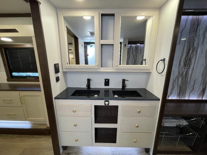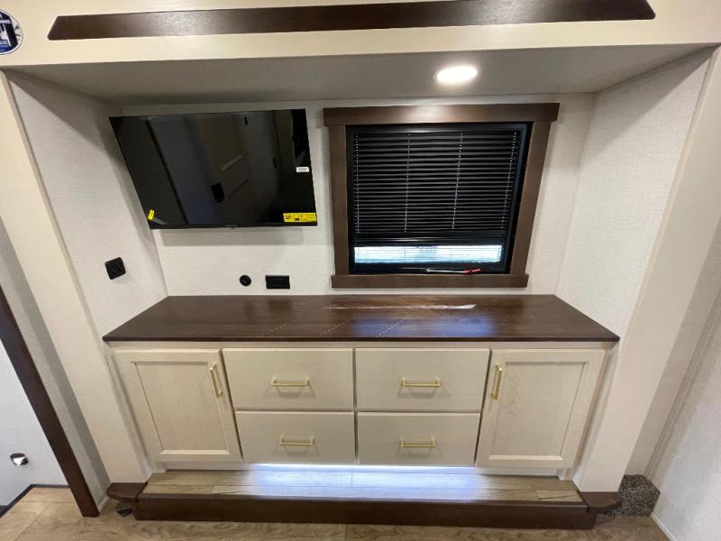 With any Cedar Creek fifth wheel by Forest River, you will find a quality-built RV with your comfort in mind! The all-aluminum super structure on 16" centers or less will provide a solid foundation to your fifth wheel, and the 3M bonded sidewalls will hold up and provide resistance to UV, heat, cold moisture, and even highway chemicals. Each model also includes a Road Warrior suspension for smooth towing, a 6-Point Hydraulic, GEN 3 Leveling System, and a new 101" wide body frame. Inside, you'll enjoy walnut/two tone wooden cabinetry with hidden hinges, cutting board drawer with cut-out trash funnel, motion lighting in the bath and bedroom closet, plus many more comforts. The New Travelfi™ Pay-as-you go internet provides the ability to bring your own internet rather than relying solely on campground WiFi, and the "Rich Solar" 200W solar panel will give you off-grid capabilities!