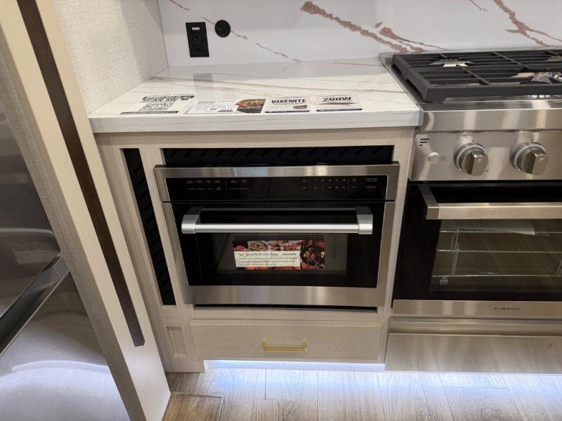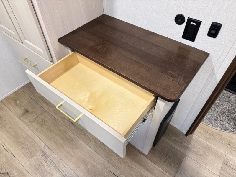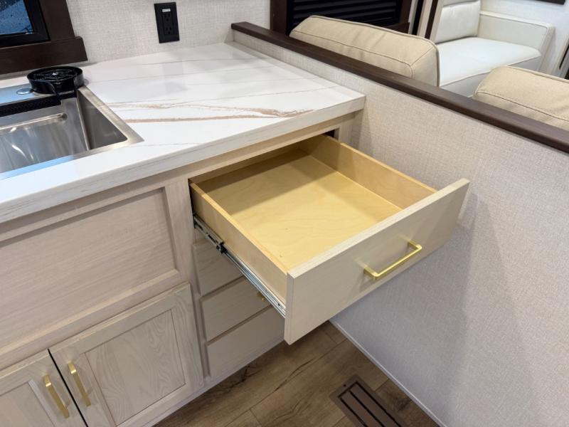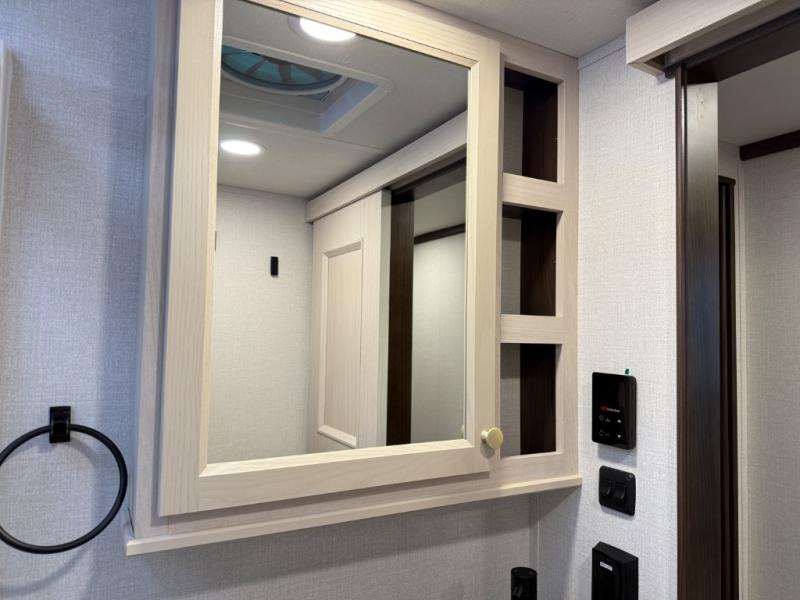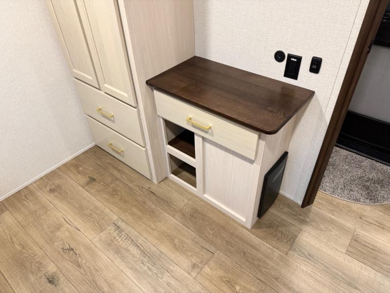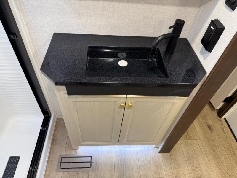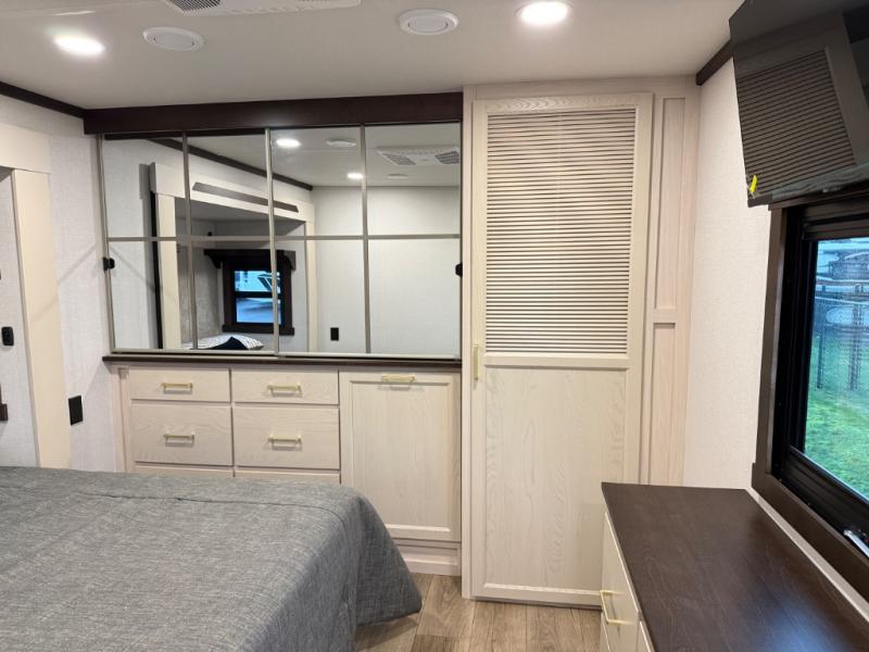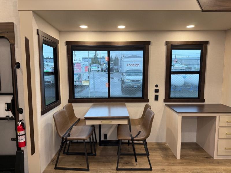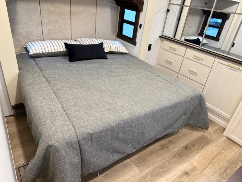 With any Cedar Creek fifth wheel by Forest River, you will find a quality-built RV with your comfort in mind! The all-aluminum super structure on 16" centers or less will provide a solid foundation to your fifth wheel, and the 3M bonded sidewalls will hold up and provide resistance to UV, heat, cold moisture, and even highway chemicals. Each model also includes a Road Warrior suspension for smooth towing, a 6-Point Hydraulic ,GEN 3 Leveling System, and a new 101" wide body frame. Inside, you'll enjoy walnut/two tone wooden cabinetry with hidden hinges, cutting board drawer with cut-out trash funnel, motion lighting in the bath and bedroom closet, plus many more comforts. The New Travelfi™ Pay-as-you go internet provides the ability to bring your own internet rather than relying solely on campground WiFi, and the "Rich Solar" 200W solar panel will give you off-grid capabilities!