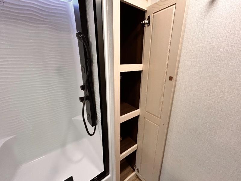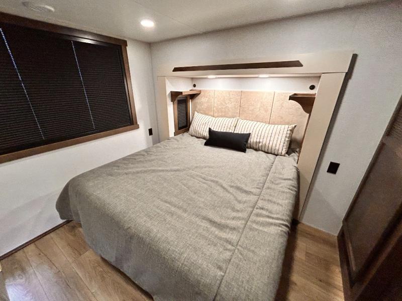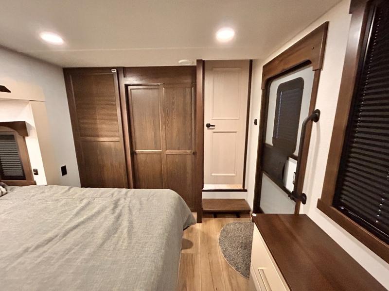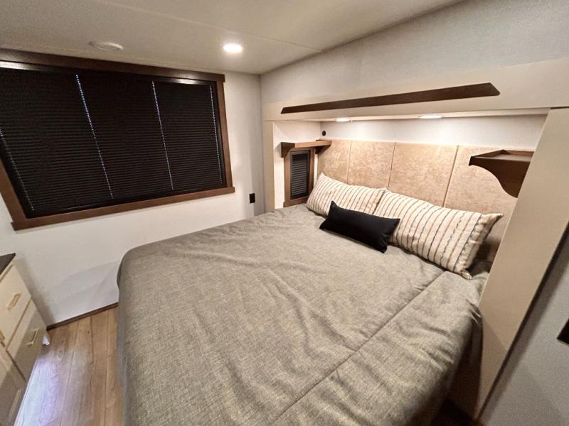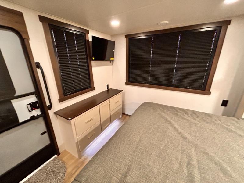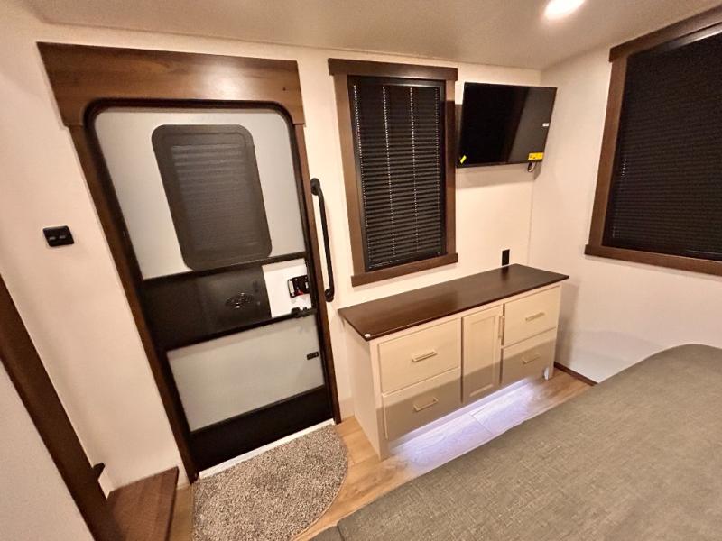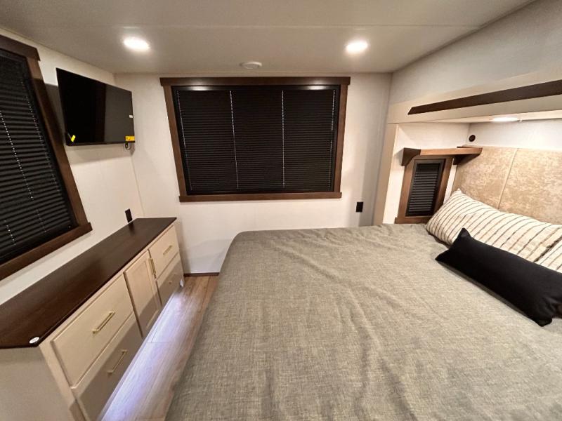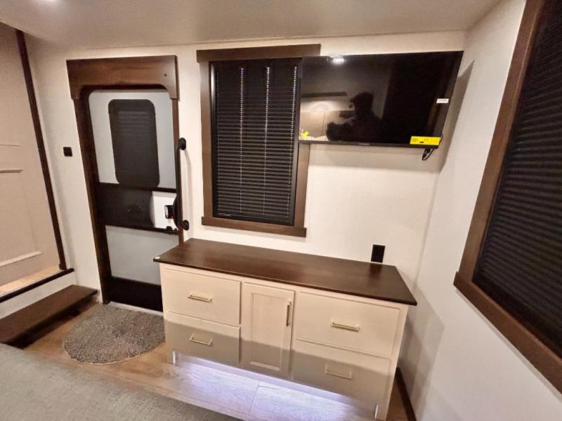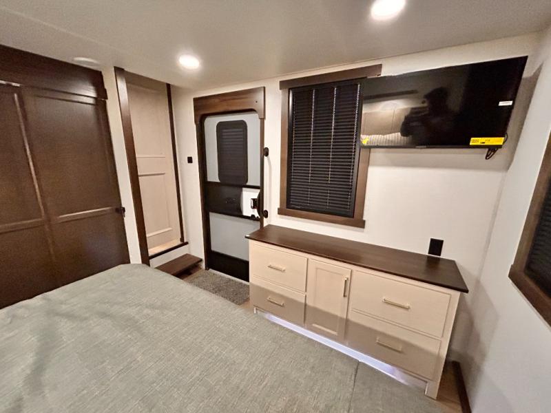 With any Cedar Creek Cottage destination trailer by Forest River, you can enjoy extended stays with residential features at the location of your choice! Each model is built with 3M bonded sidewalls that grow stronger with age and are resistant to UV, heat, oil, moisture, and more. There is also an AlphaPly TPO roof membrane, and new waterproof and bug proof Vixenite slide room floor panels for added durability. Head inside where you'll find residential dovetail, self-closing drawers, flush floor slides in the kitchen and living area, a residential style headboard and luxurious bedding decor, and extra storage for linens in the bedroom and bath.