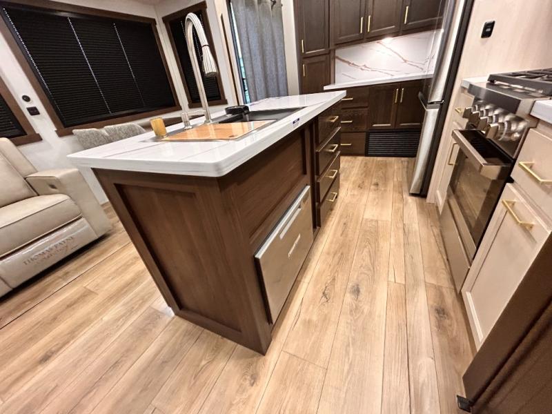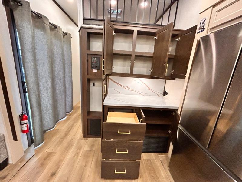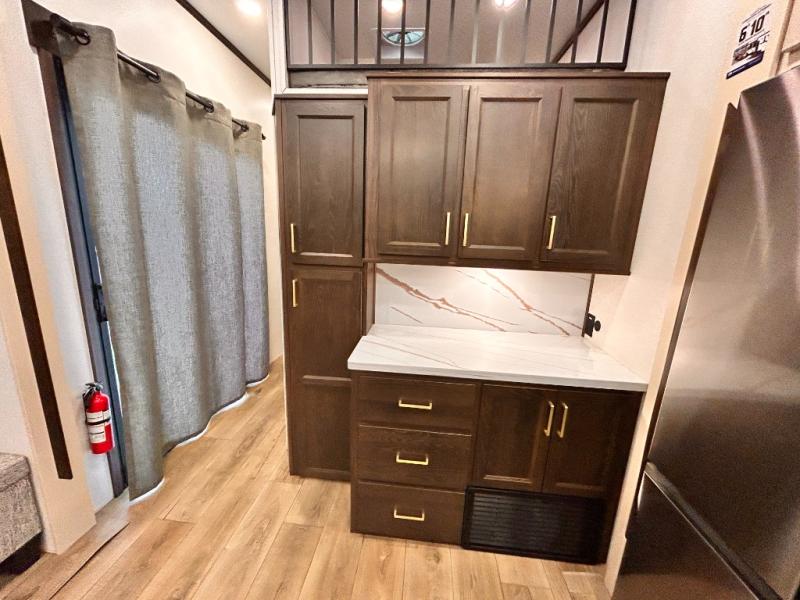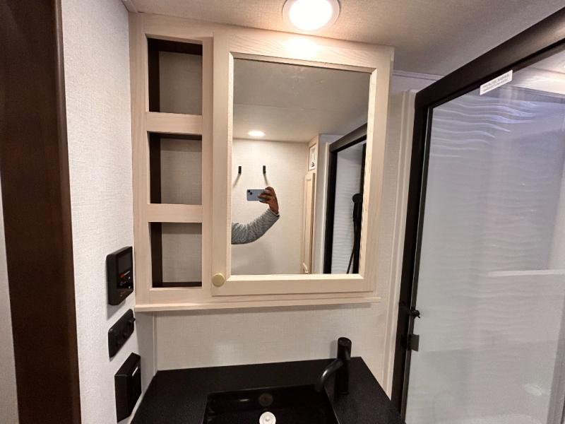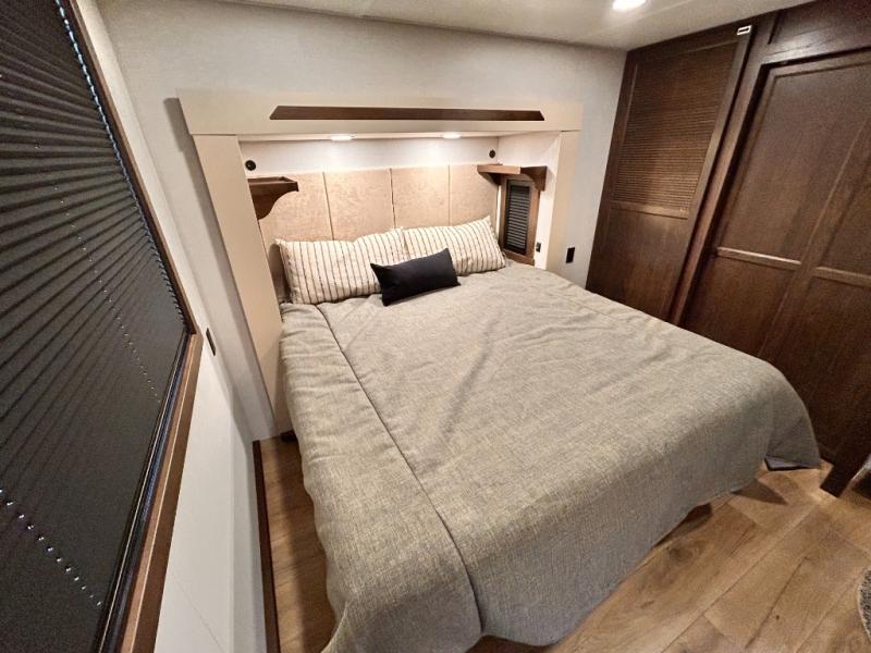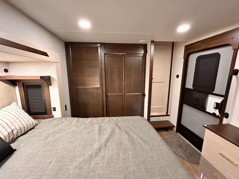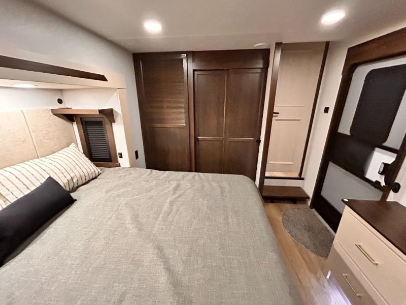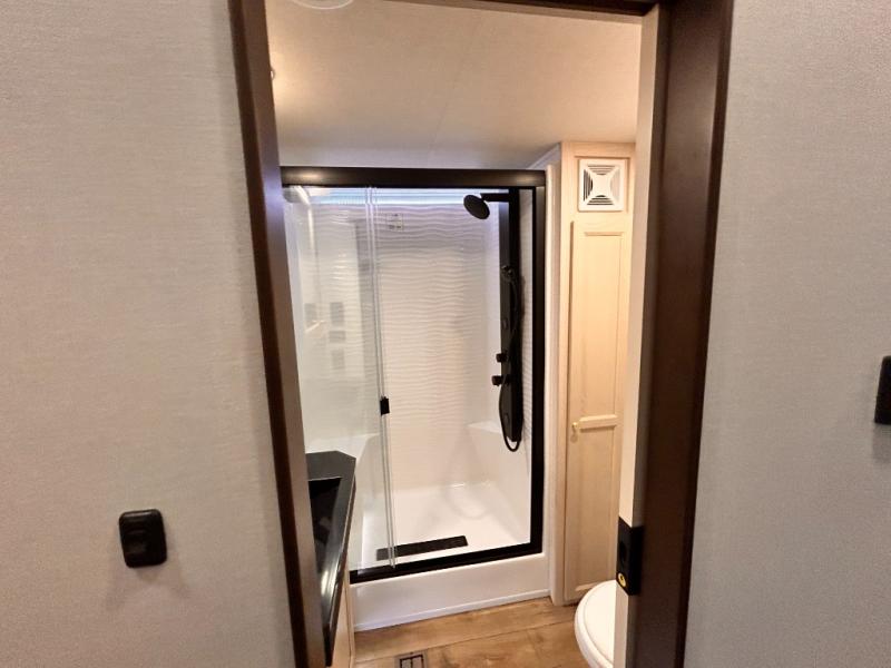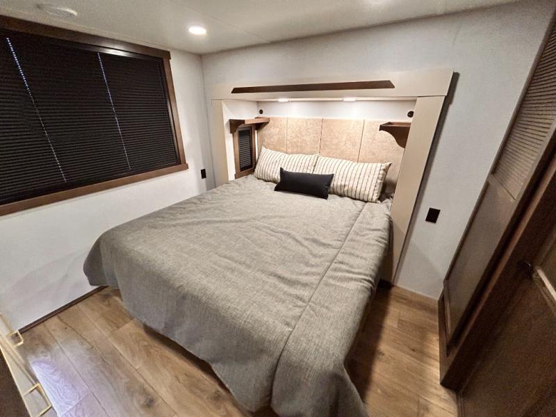 With any Cedar Creek Cottage destination trailer by Forest River, you can enjoy extended stays with residential features at the location of your choice! Each model is built with 3M bonded sidewalls that grow stronger with age and are resistant to UV, heat, oil, moisture, and more. There is also an AlphaPly TPO roof membrane, and new waterproof and bug proof Vixenite slide room floor panels for added durability. Head inside where you'll find residential dovetail, self-closing drawers, flush floor slides in the kitchen and living area, a residential style headboard and luxurious bedding decor, and extra storage for linens in the bedroom and bath.