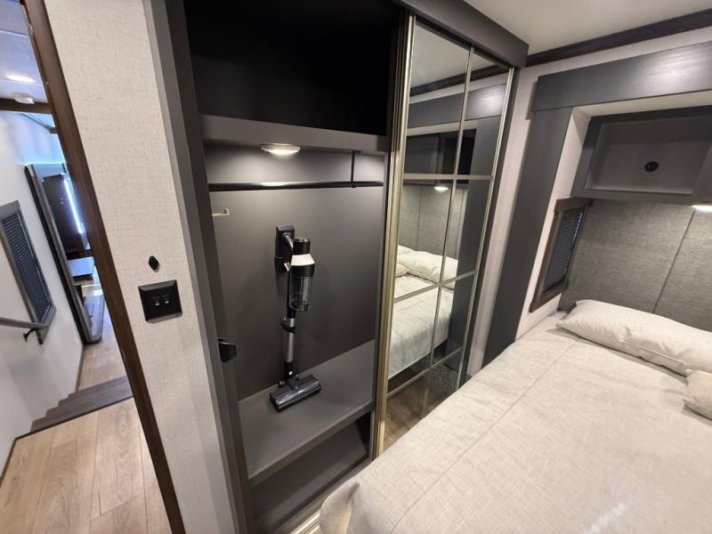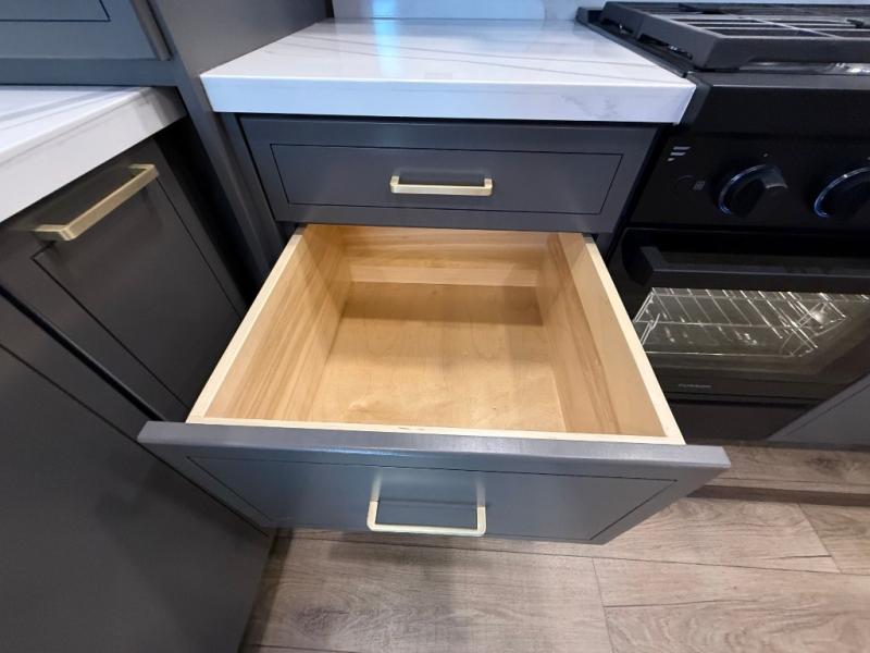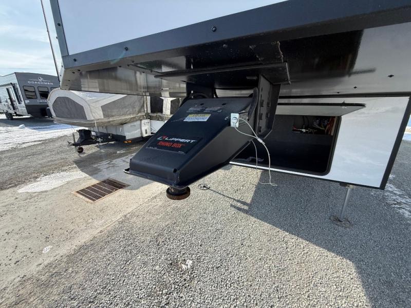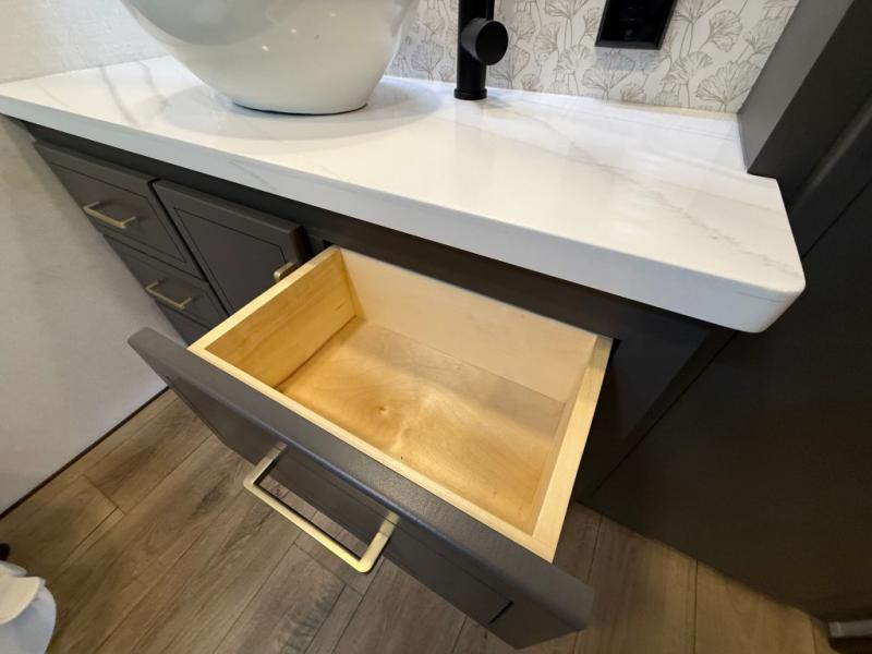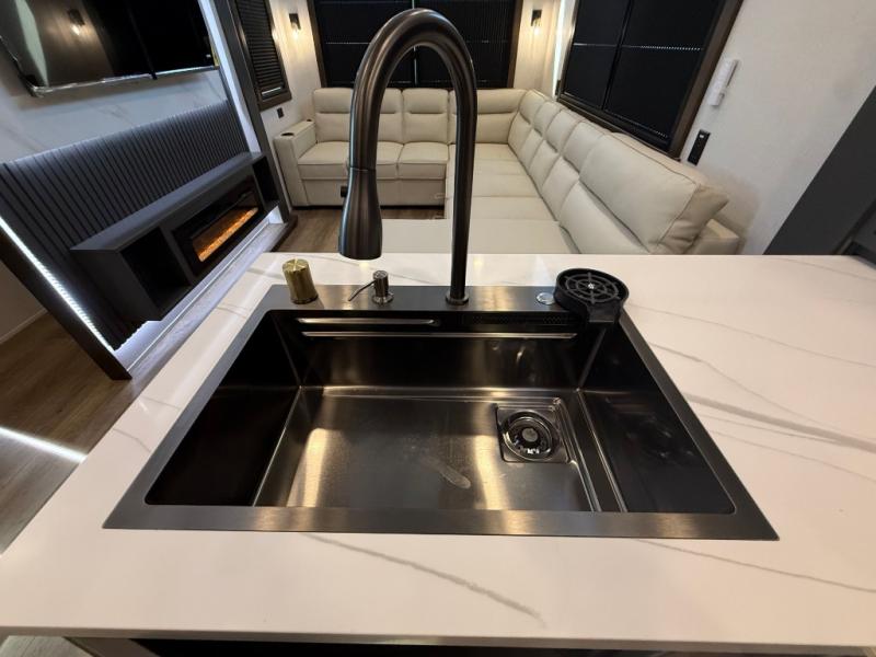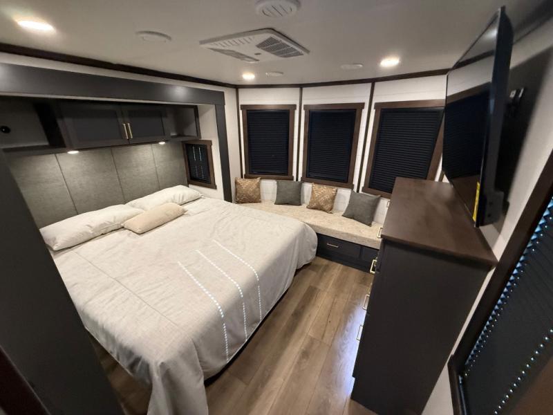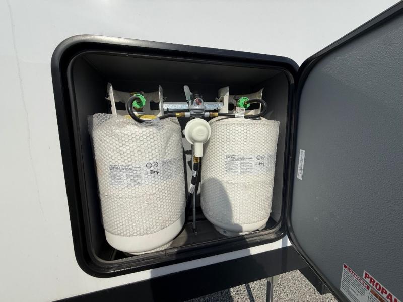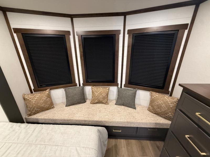 Hop on new adventures with the Forest River Cedar Creek Cottage Fifth Wheels! Each destination fifth wheel features a 101" wide body frame that provides a sturdy foundation for your adventures, while the AlphaPly TPO roof membrane offers superior durability and weather resistance. Plus, the 3M Bonded Sidewalls add an extra layer of protection and strength, and the hydraulic front jacks make setting up camp a breeze. In the luxurious interiors, the vinyl floor covering is easy to clean, and the Vixeinite flush floor slides in the kitchen and living area provide a seamless transition between the floor and the slide-outs. In addition, the 52" ceiling fan in the living room circulates air and adds to the spacious feel, and the kitchen island is a standout feature, boasting a solid surface counter, a flush-mount sink, and a stainless-steel design. You'll feel like you're cooking at home! Finally, the USB ports in the bathroom ensure you can keep your devices charged and within reach, even in the most convenient places.