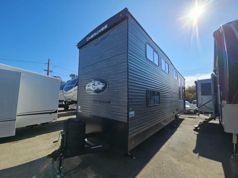 Enjoy comforts of home wherever you decide to roam in a Cherokee Timberwolf destination trailer by Forest River. Each trailer is made with quality construction materials, like with all Forest River products, plus you'll find convenient exterior features to make extended stays easier than ever. You will love the interior with its cozy sleeping arrangements, full bath and kitchen amenities, plus plenty of storage spaces for food, clothing, gear and more! With mini loft and full-size destination trailers available, you're sure to find a Cherokee Timberwolf that fits your needs!